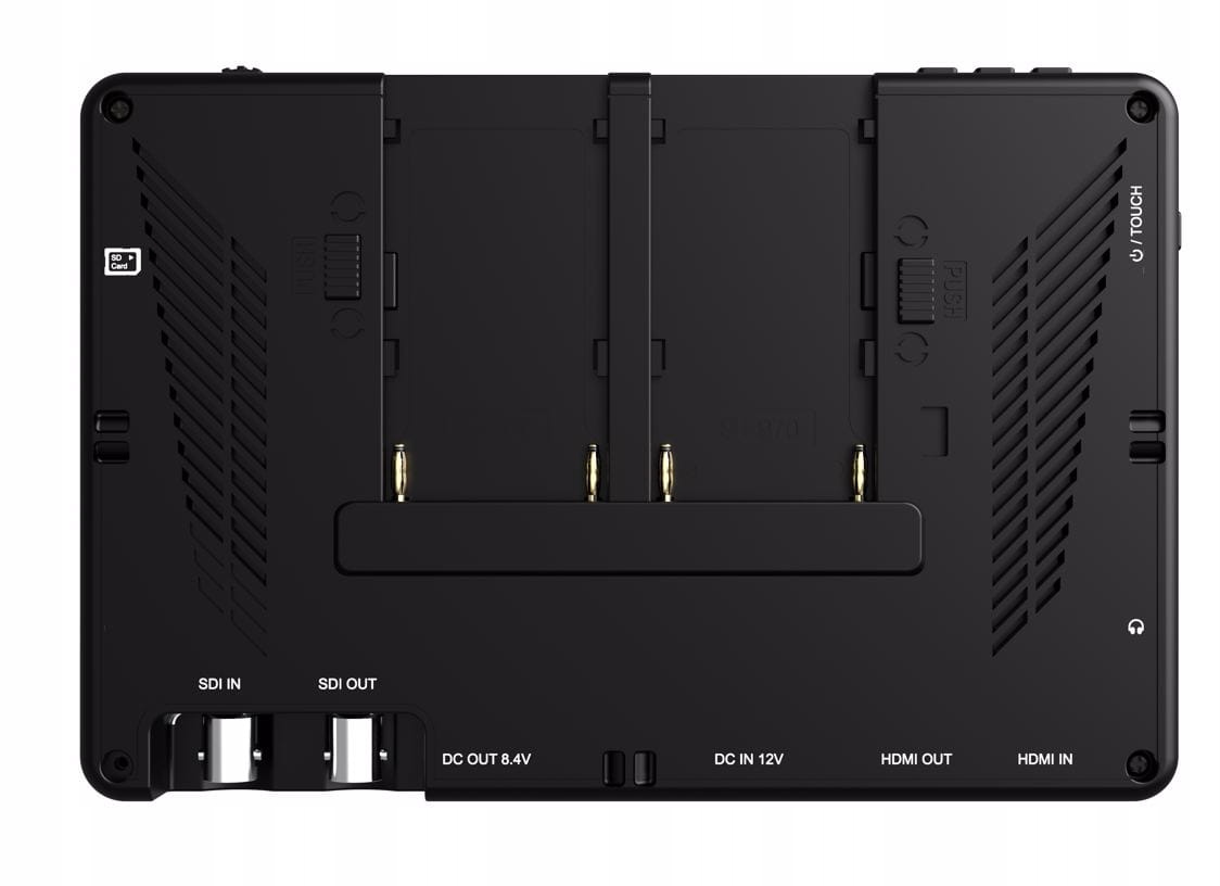 На передней панели имеется большой сенсорный ЖК-экран с высоким разрешением, читаемый при дневном свете, видеопорты внизу и слот для SD-карты сбоку, а сзади имеется место для двух батарей NP-F. Внешняя рама имеет стандартные ¼-дюймовые точки крепления снизу, слева и справа для крепления к камерам и оборудованию. Эта деталь конструкции позволяет легко прикрепить LUT7S к камере и легко поделиться ею с членом команды или клиентом на съемочной площадке. р>