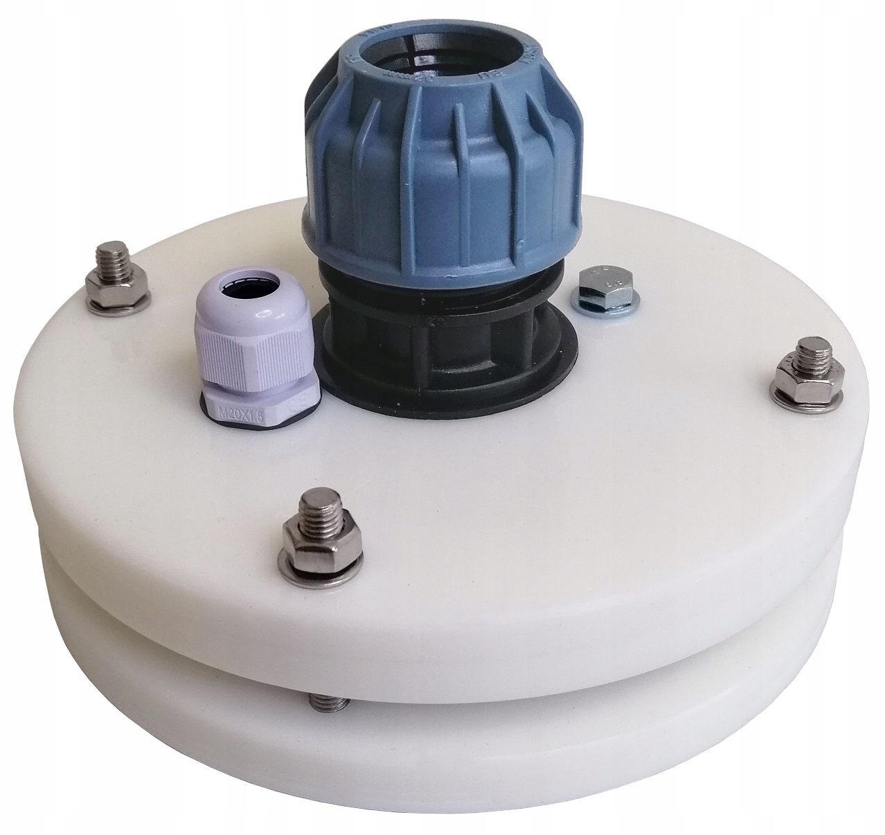 Используемый соединитель PE выдерживает вес насоса лучше, чем резиновые прокладки в сквозных головках.