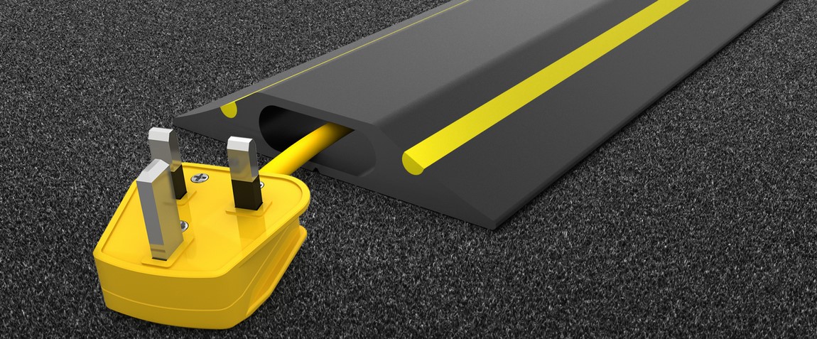 Универсальная крышка, используемая для защиты незакрепленных кабелей в местах, где движутся люди и тележки.