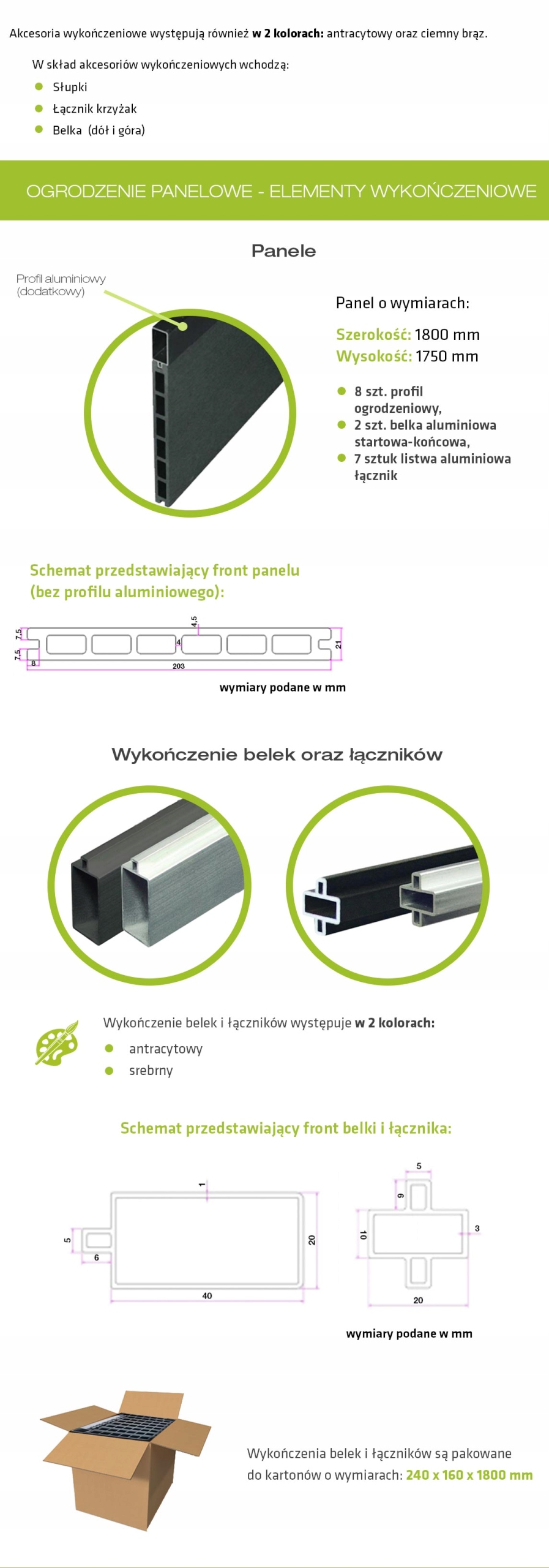Панели ДПК доступны в цветах: антрацит и темно-коричневый, алюминиевая отделка антрацит и серебро.