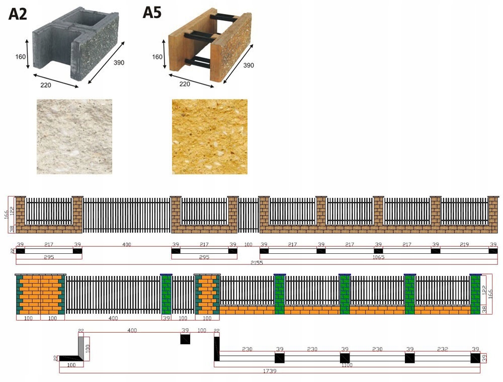 Забор разрезной, блок разрезной, блок Combet А3 39х39х16 Желтый