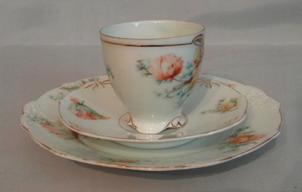 Белый фарфор. Рельефы, позолота и растительный декор.