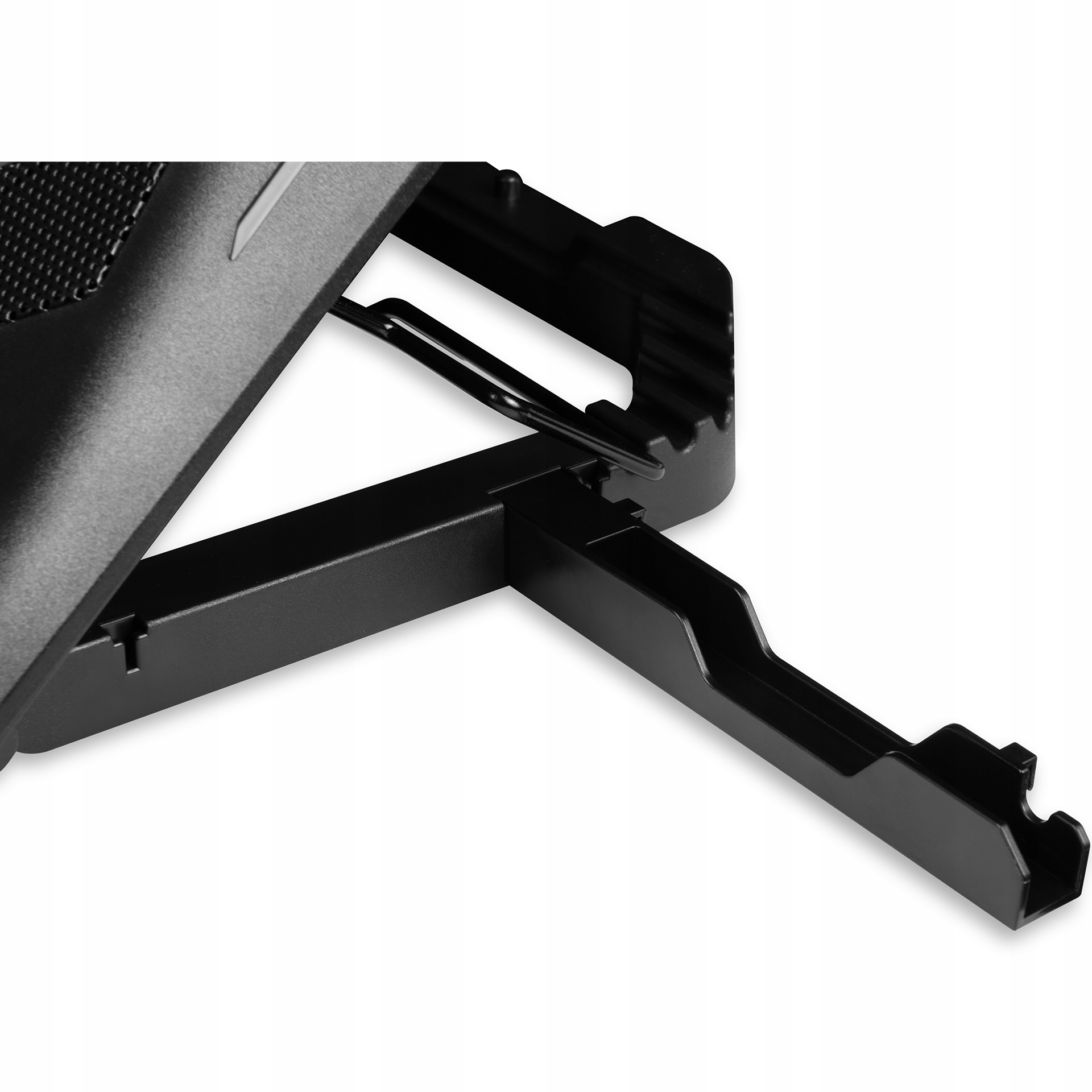 Регулировка наклона ноутбука. Большой угол охлаждения (4,5 – 45 градусов) позволяет расположить ноутбук в соответствии с вашими предпочтениями. Работать за ноутбуком становится еще приятнее и эргономичнее – руки меньше устают и ощущение дискомфорта значительно снижается. Складные замки предотвращают скольжение ноутбука, поэтому ваше оборудование будет в безопасности и не будет повреждено.