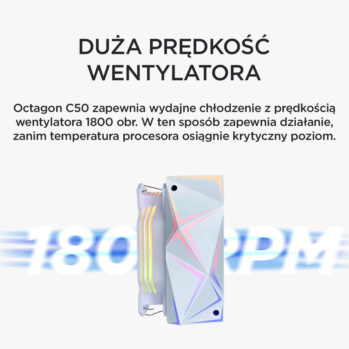 Rampage Octagon C50 -это система воздушного охлаждения с высоким уровнем, предназначенная для поддержания оптимальной температуры процессора даже во время интенсивного использования. Благодаря эффективному воздушному потоку, подсветке ARGB и широкой совместимости, это идеальное решение для энтузиастов игр, так и для пользователей, требующих стабильной работы системы.