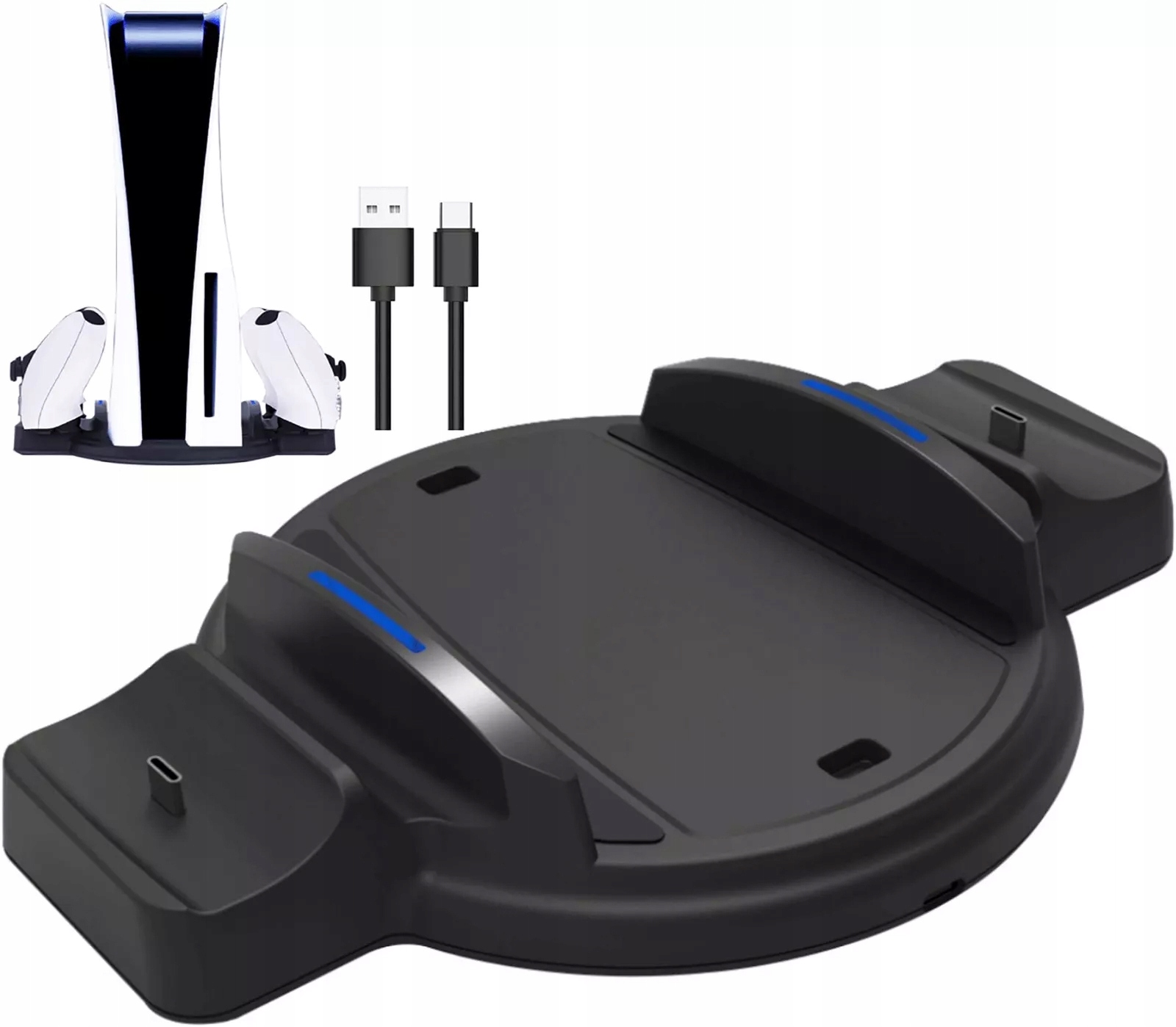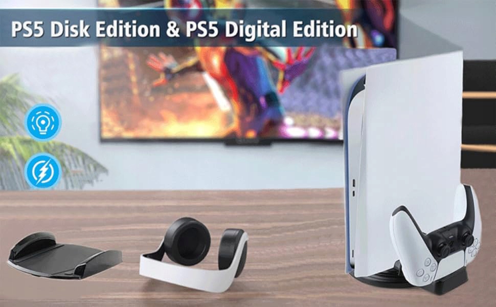 Подставка для консоли PS5 Digital Edition и дисковой игровой консоли, зарядная станция для двух контроллеров PS5, два порта USB 2.0, светодиоды, указывающие состояние зарядки, кабель USB-C.