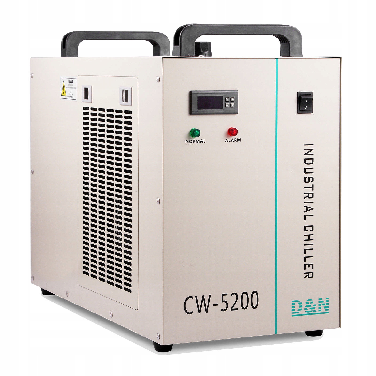 Модель CW 5200 — специальный охладитель для лазеров мощностью до до 150 Вт. Имеет хладагент и компрессор, благодаря которым при достижении жидкостью аварийной температуры встроенный блок очень быстро охлаждает жидкость в лазерной трубке.