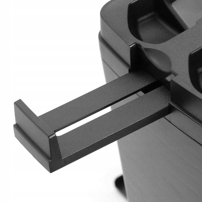 Подставка позволяет разместить консоль PlayStation 4 на боковой стене. Это экономит место. Подставка изготовлена из прочного пластика, поэтому ее можно использовать годами. Подставка оснащена вентилятором, охлаждающим консоль. Под подставкой есть резинки для стабилизации консоли. Станция включает в себя 2 док-станции для планшетов и 2 док-станции для контроллеров Move для их зарядки, место для VR 1-го поколения, держатель для VR-очков, 2 держателя планшетов и подставку для 11 игр. Благодаря светодиодам мы знаем состояние зарядки пэдов и Move.