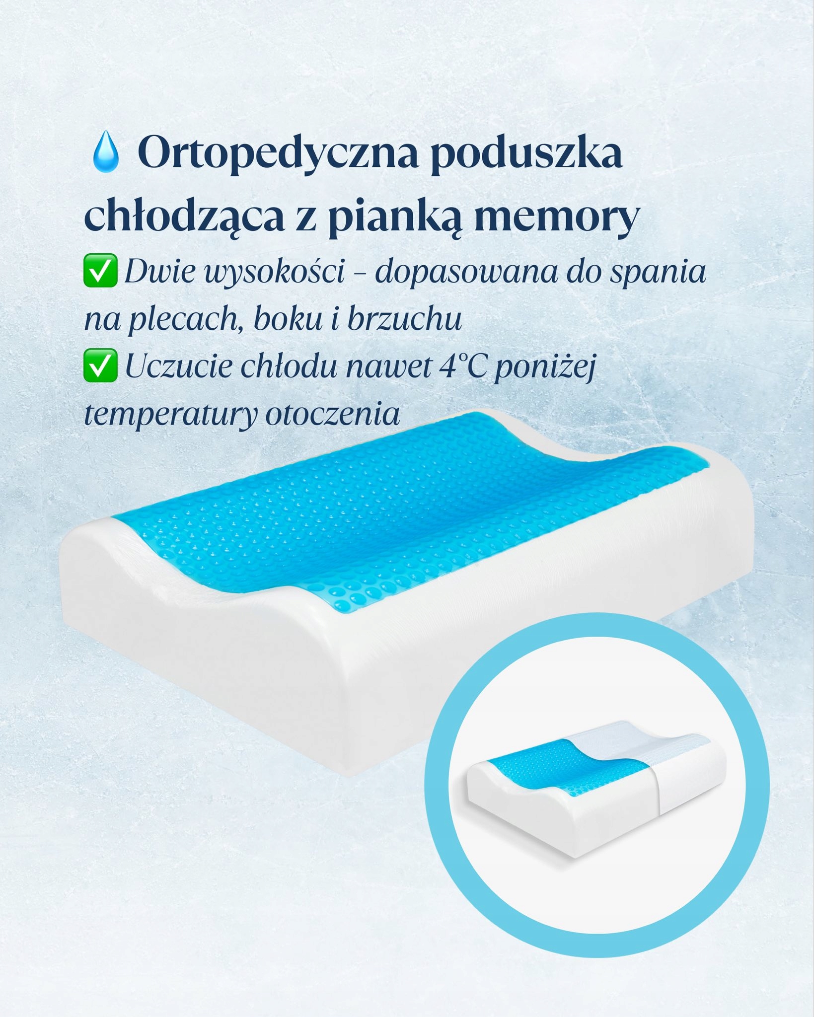 Гелевая подушка Asya — это сочетание классического комфорта для сна и инновационной технологии охлаждения. Подушка создана для людей, которые ценят простоту, воздухопроницаемость и стабильную поддержку шеи и головы.