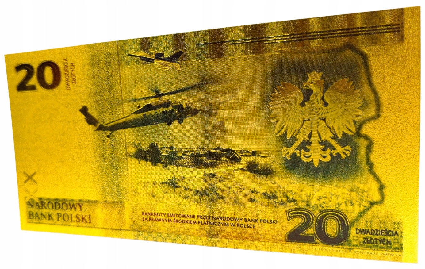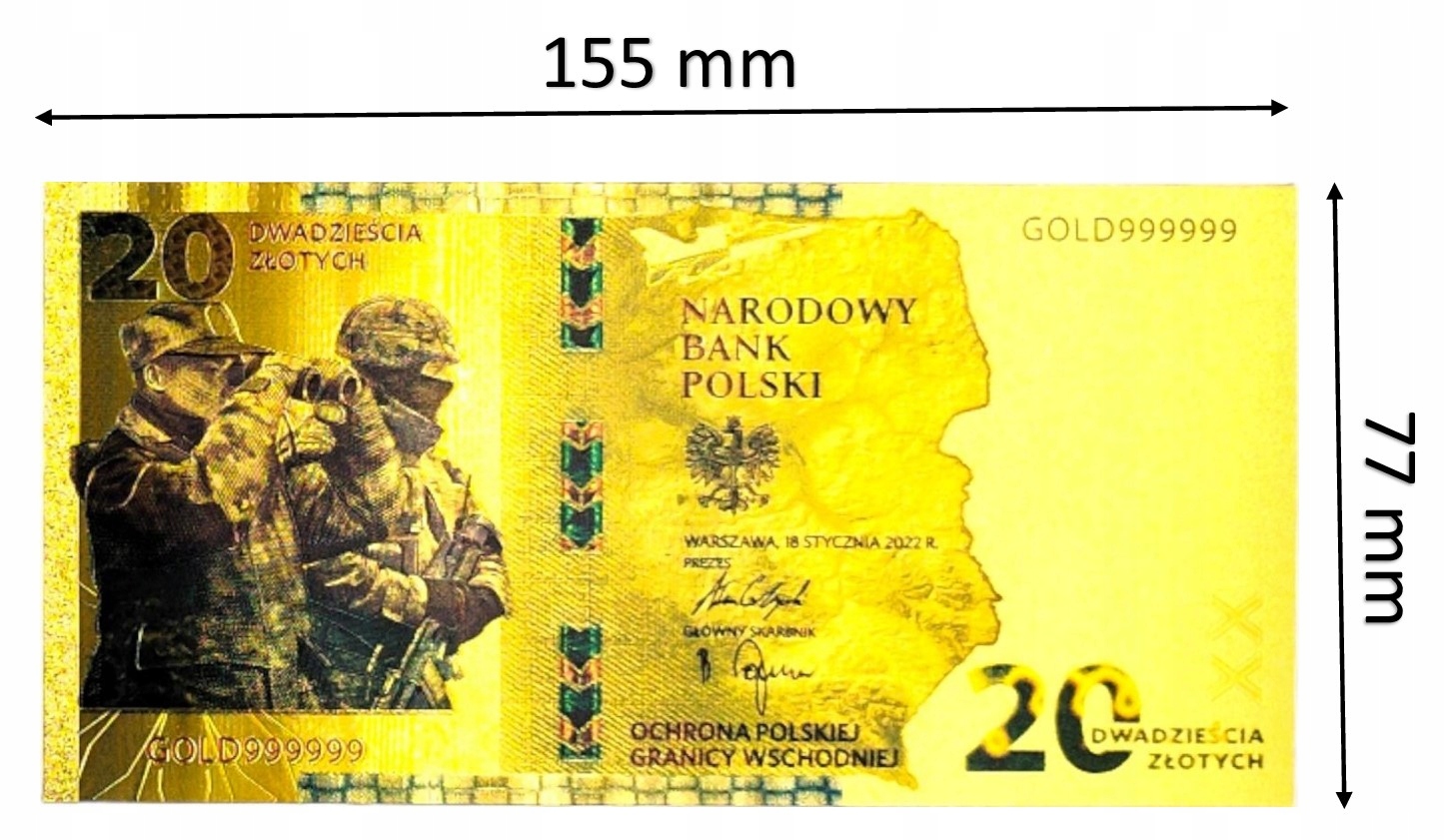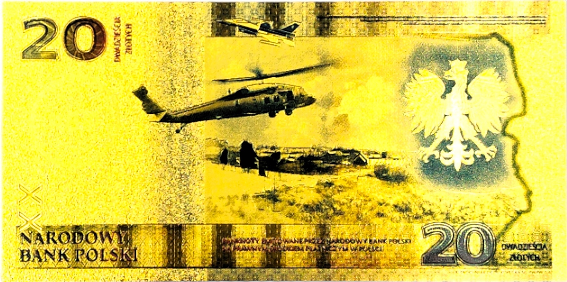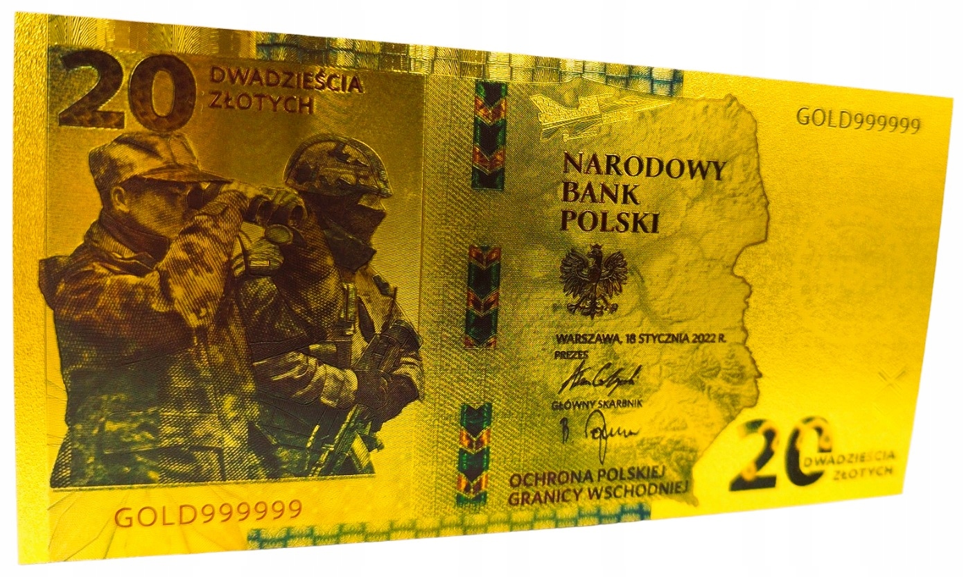 Банкнота номиналом 20 злотых была выпущена с уважением и признательностью к сотрудникам пограничной службы, полиции и солдаты Войска Польского, которые составляют незаменимую защиту польских границ и национального суверенитета. Эта банкнота является данью их жертвенности и служению Польше, а также защите ее границ и независимости.