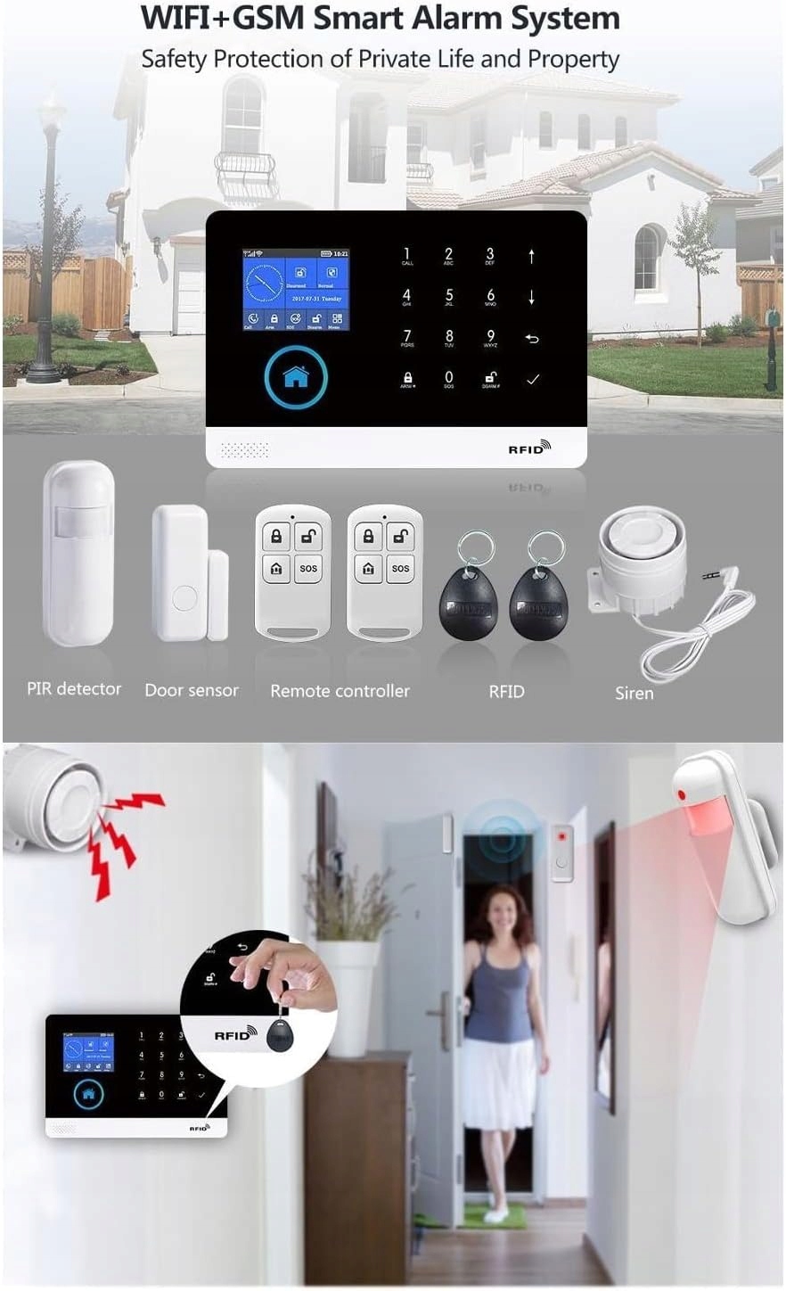 Аксессуары для домашней охранной сигнализации своими руками: вы можете сделать аксессуары для домашней сигнализации своими руками, такие как RFID-карта, датчик двери/окна, датчик движения Pir, сирена.