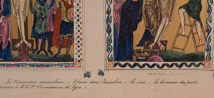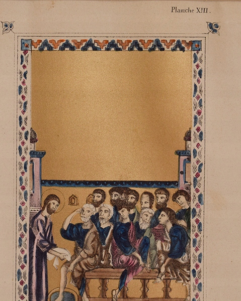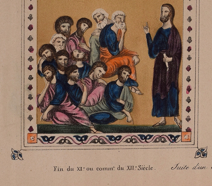 Красивая литография с изображением сцен из Библии по средневековым миниатюрам «Les Arts au Moyen Age» («Искусство в средние века») . h2>Литография расписана вручную.