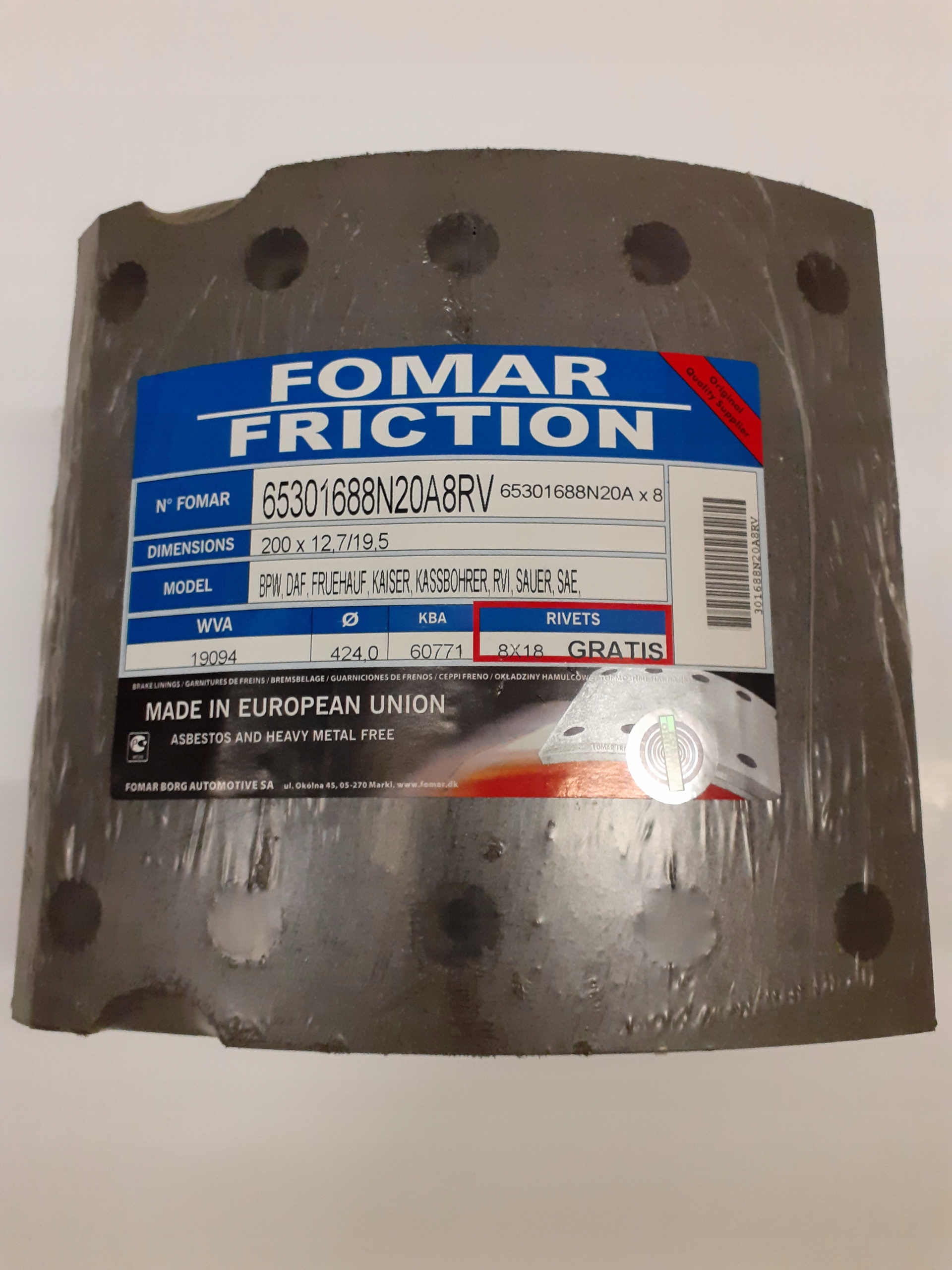 Просматривая «Okładziny BPW WVA 19094 2 nadwymiar 424x200», вы можете быть уверены, что данный товар из каталога «[rubrica_name]» будет доставлен из Польши и проверен на целостность. В цене товара, указанной на сайте, учтена доставка из Польши. Внимание!!! Товары для Евросоюза, согласно законодательству стран Евросоюза, могут отличаться упаковкой или наполнением.