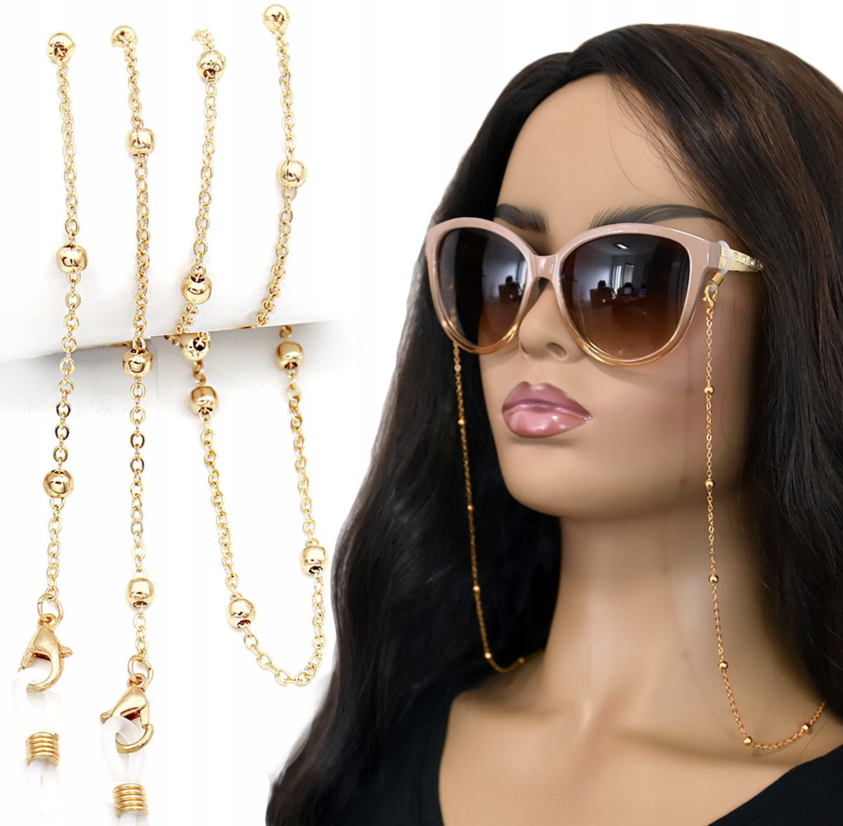 Она служит красивым украшением, а также обеспечивает защиту очков, резиновые зажимы на концах цепочки предотвращают появление царапин на дужках очков. Благодаря застежкам на обоих концах цепочки, ее также можно использовать для масок.
