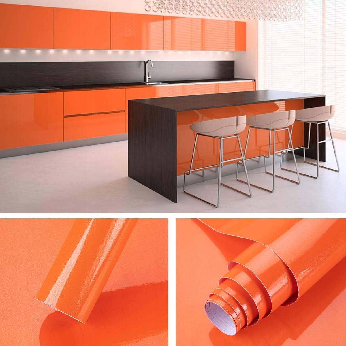 САМОКЛЕЯЩИЙСЯ ШПОН ОРАНЖЕВЫЙ ГЛЯНЦЕВЫЙ МЕБЕЛЬНАЯ ФОЛЬГА РУЛОН 40СМ Х 500СМ