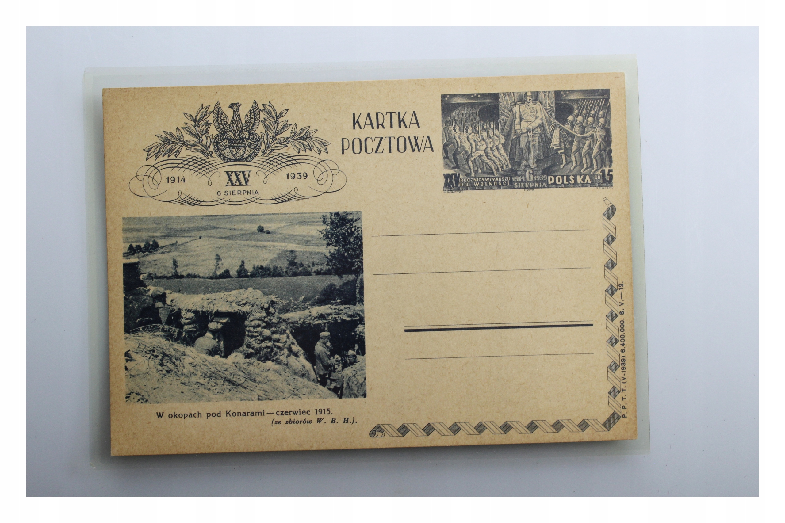 Описание: памятная открытка 1939 года с изображением окопов под Конарами, июнь 1915 года.(Открытка без обращения) .