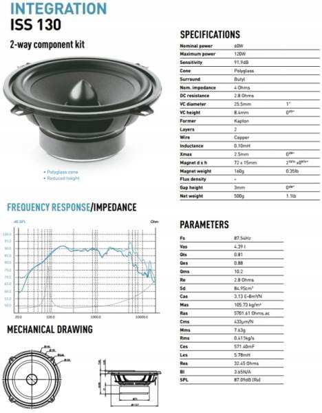 Набор автомобильных 2-полосных компонентных динамиков с низкочастотными динамиками диаметром 130 мм из серии Focal Integration.