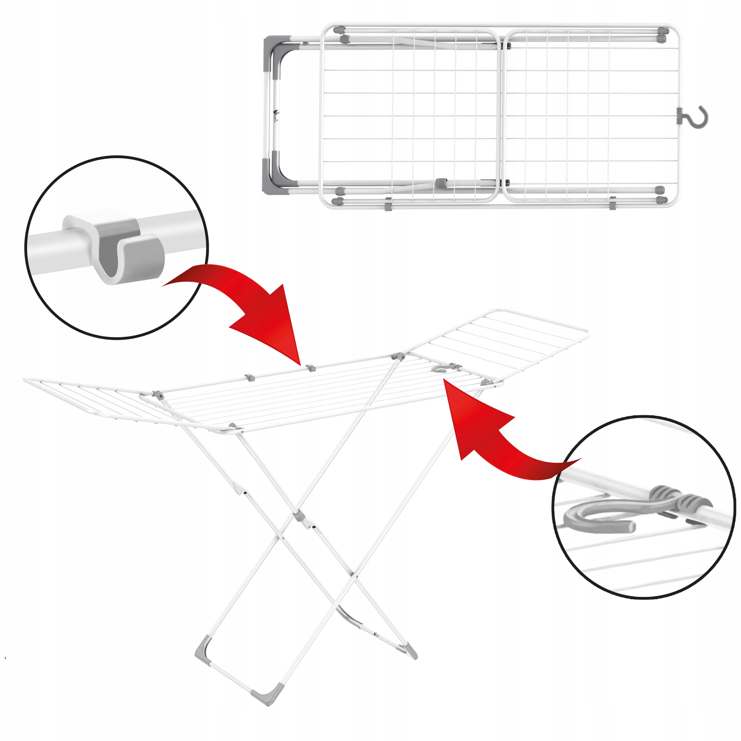 ОТДЕЛЬНОСТОЯЩАЯ БЕЛАЯ ПОДВЕСНАЯ СУШИЛКА ДЛЯ БЕЛЬЯ С ЖЕСТКИМ ЗАПОРНЫМ КРЮКОМ