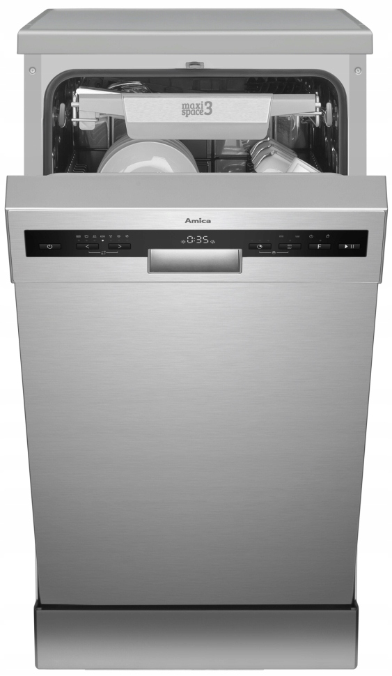 Посудомоечная машина Amica DFM44C7EOqSH 45 см, 10 комплектов, 7 программ, 1/2 загрузки, 3 корзины