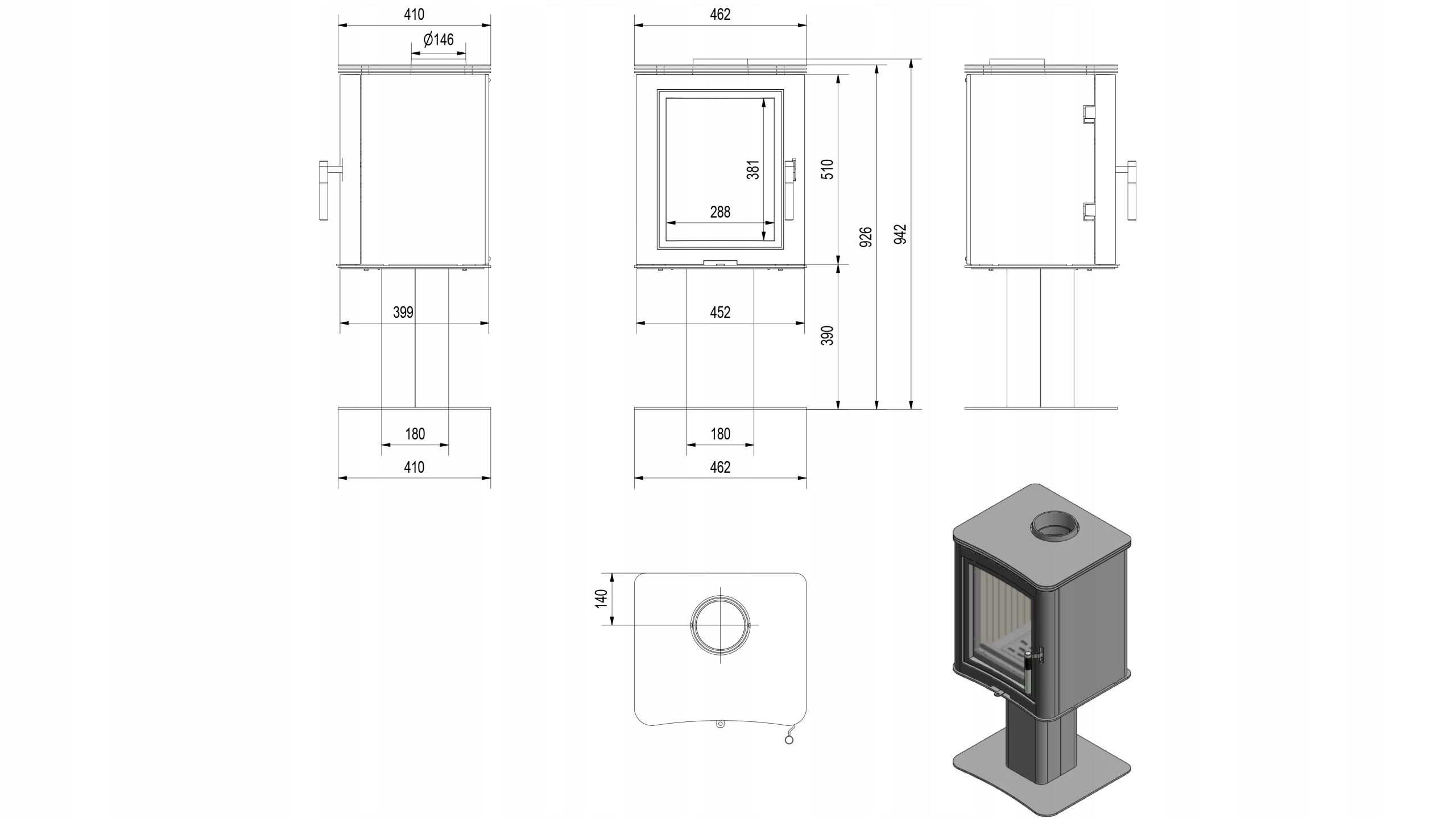 Может использоваться в различных Условия установки, благодаря регулируемому отводу отходящих газов: сзади или вверху печи (при установке выхода сзади печи необходимо приобрести верхнюю пластинчатую заглушку).
