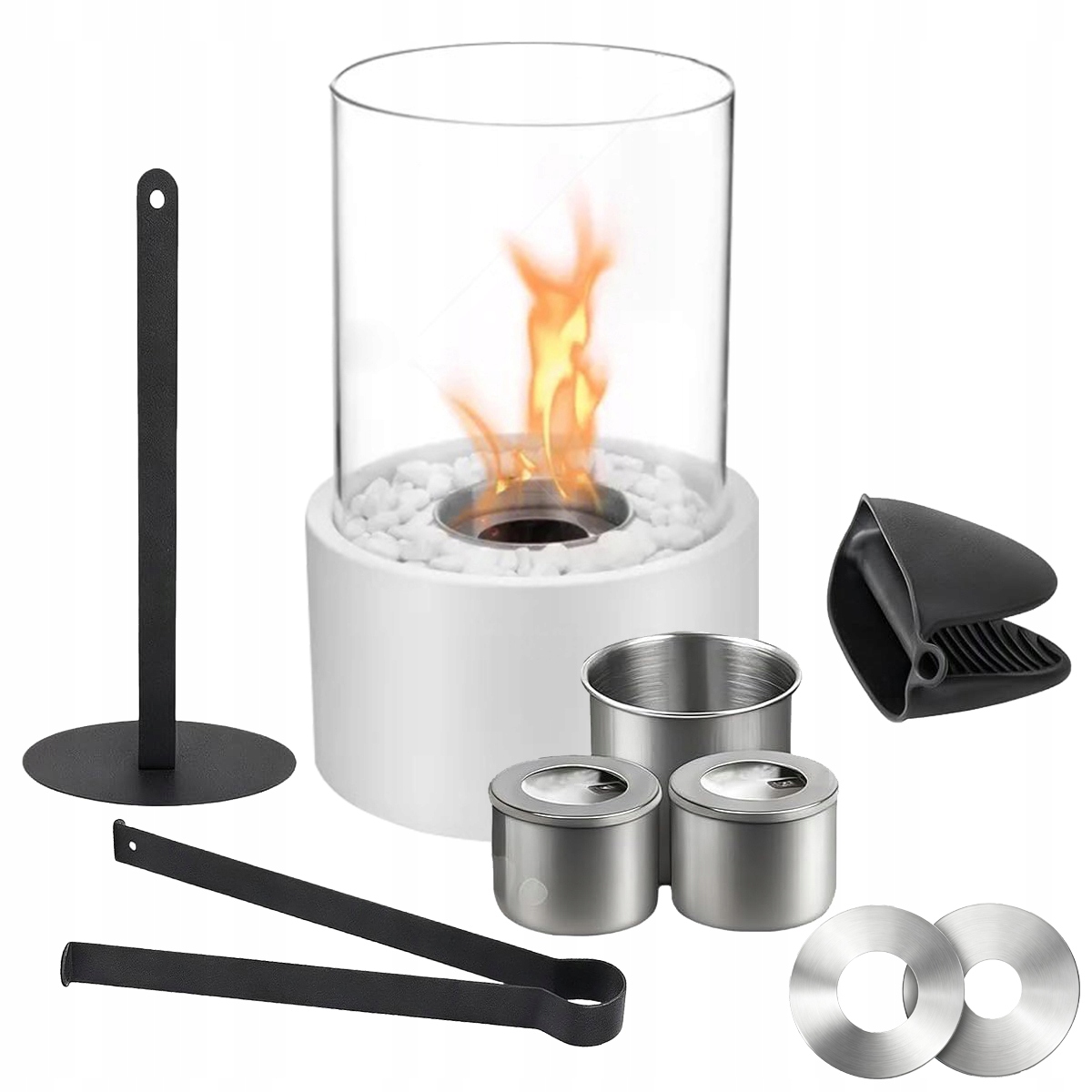 Общие размеры ок. Диаметр 16 см, высота 27 см. Благодаря современному виду и чистым линиям этот белый камин идеально впишется в любое жилое пространство. На террасе, в саду или на журнальном столике — настольный камин привлекает внимание и украшает окрестности благодаря своему декоративному характеру.