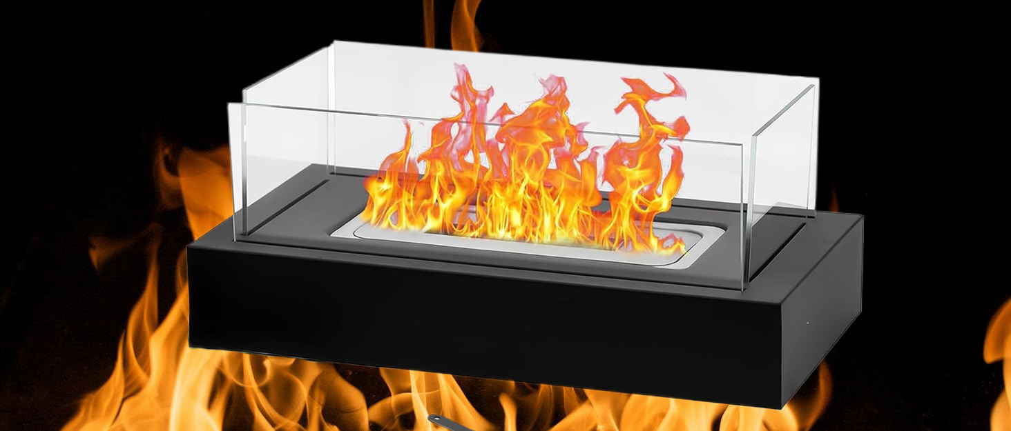 🔥Настольный камин [время горения 3 часа] Настольный каминный комплект для внутреннего и наружного использования Этаноловый камин с 4-сторонним защитным стеклом Настольный биоэтаноловый камин Оформление балкона