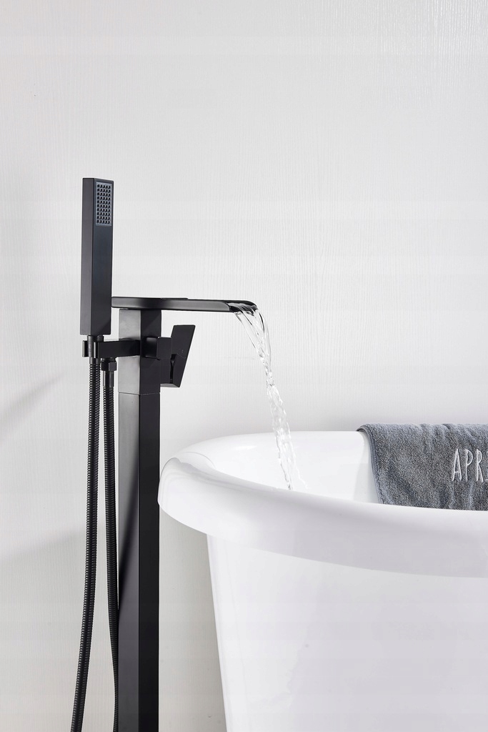 ОТДЕЛЬНО СТОЯЩИЙ ЧЕРНЫЙ СМЫВАТЕЛЬ ДЛЯ ВАННЫ С ВОДОПАДОМ, ИДЕАЛЬНЫЙ ДЛЯ СОВРЕМЕННЫХ