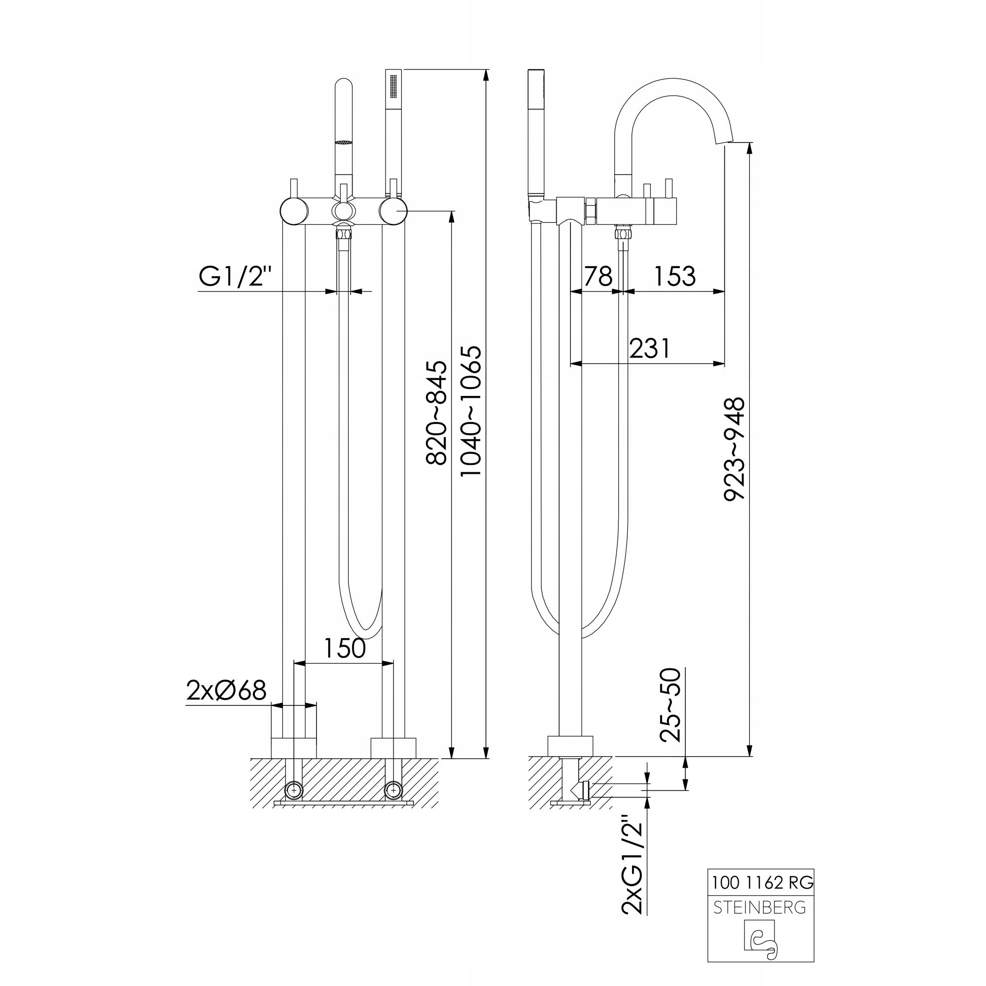 ОТДЕЛЬНО СТОЯЩИЙ СМЕСИТЕЛЬ ДЛЯ ВАННЫ STEINBERG из РОЗОВОГО ЗОЛОТА