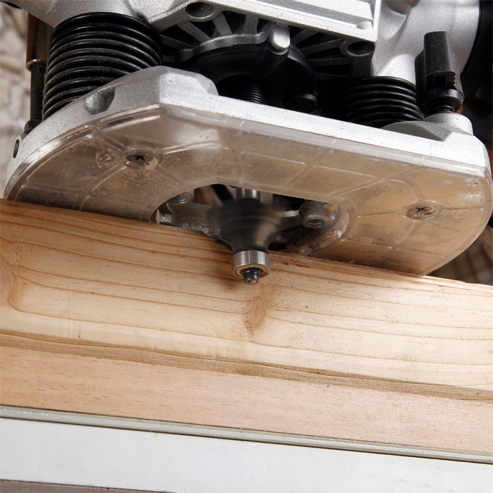 - Фрезы с нижним подшипником позволяют вести инструмент по шаблону, расположенному под фрезеруемым материалом.