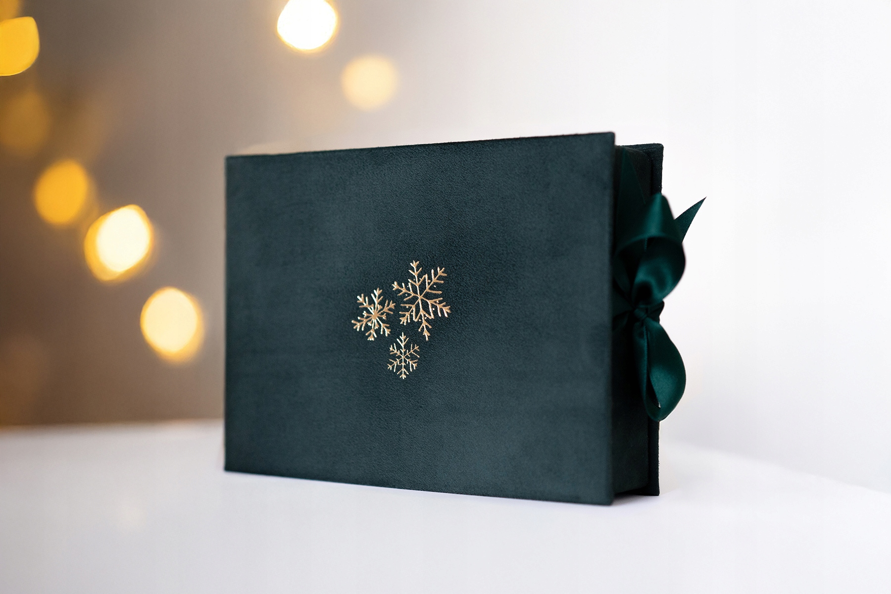 Бархатная фотокоробка 10х15 см, персонализированная золотым штампом, три цвета на выбор