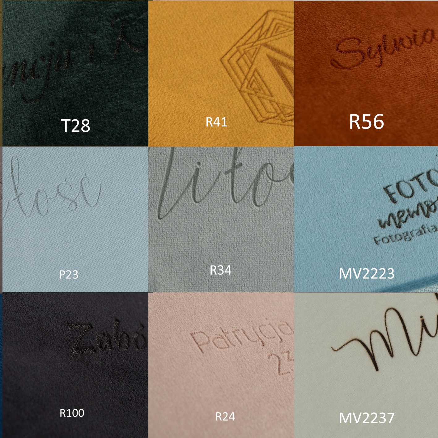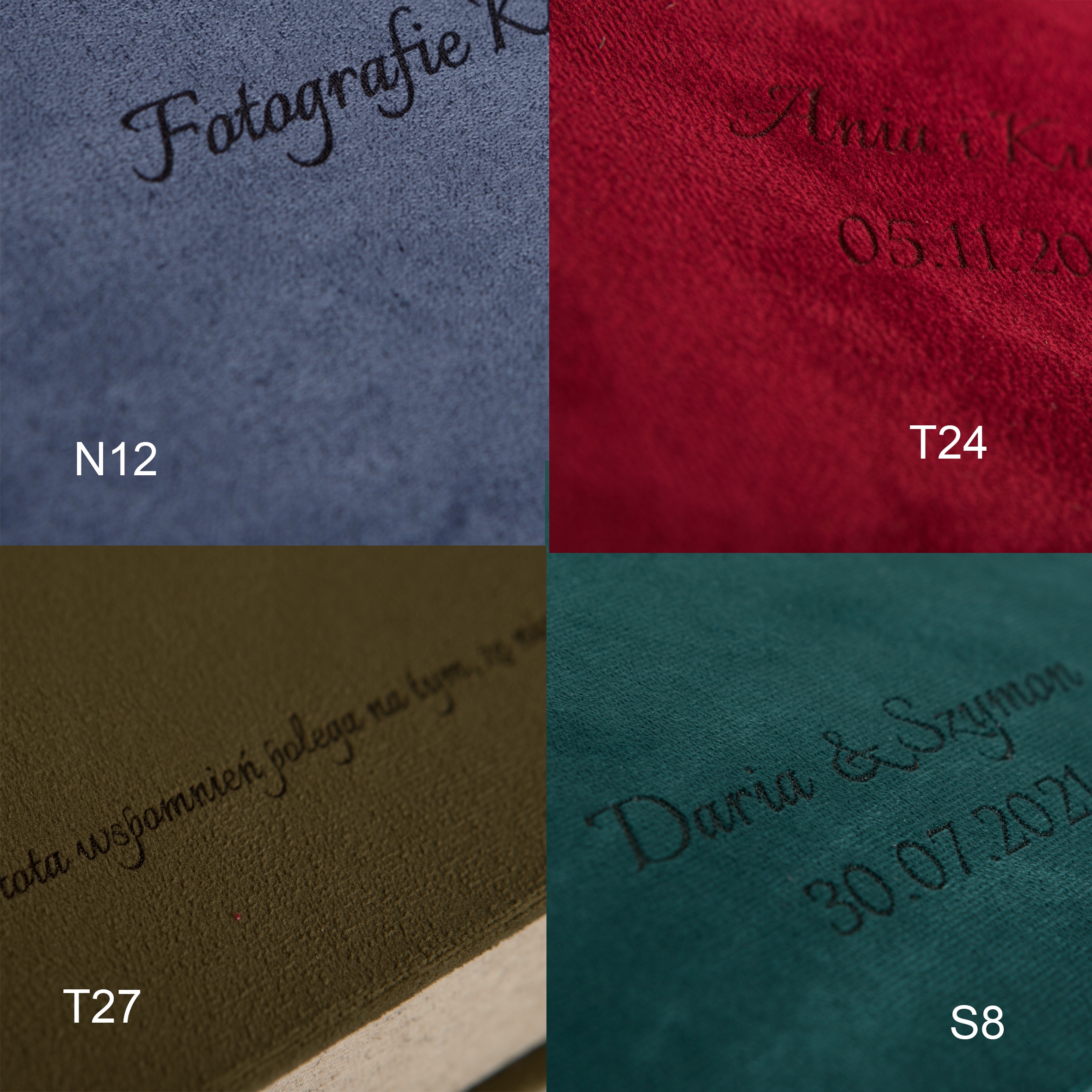 Оксамитова фотошкатулка 15х21 на 100 фотографій, всі тканини, гравіювання