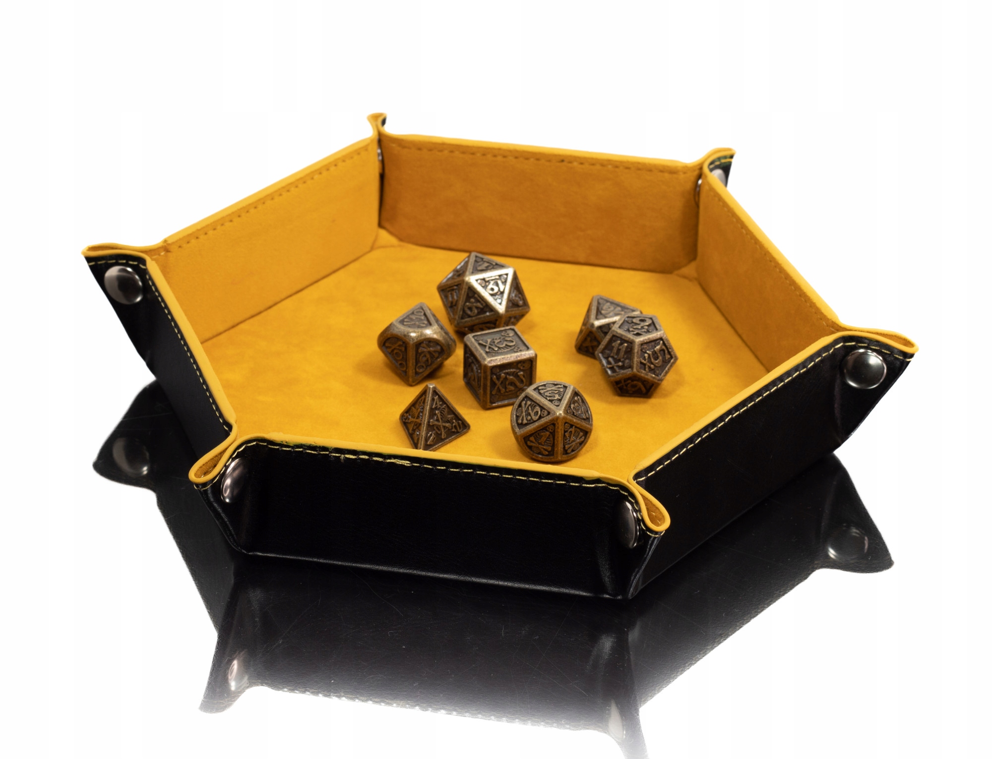 Кожаный лоток для игральных костей — полезный, хотя и незаметный гаджет. Во-первых, это дает вам свободу играть рядом с другими людьми, поскольку приглушает звук броска игральных костей. Во-вторых, это устраняет проблему нехватки места для броска, например. во время путешествия, в поезде или самолете. Небольшое пространство, предназначенное исключительно для бросков кубиков, значительно повышает комфорт и удовольствие от игры.