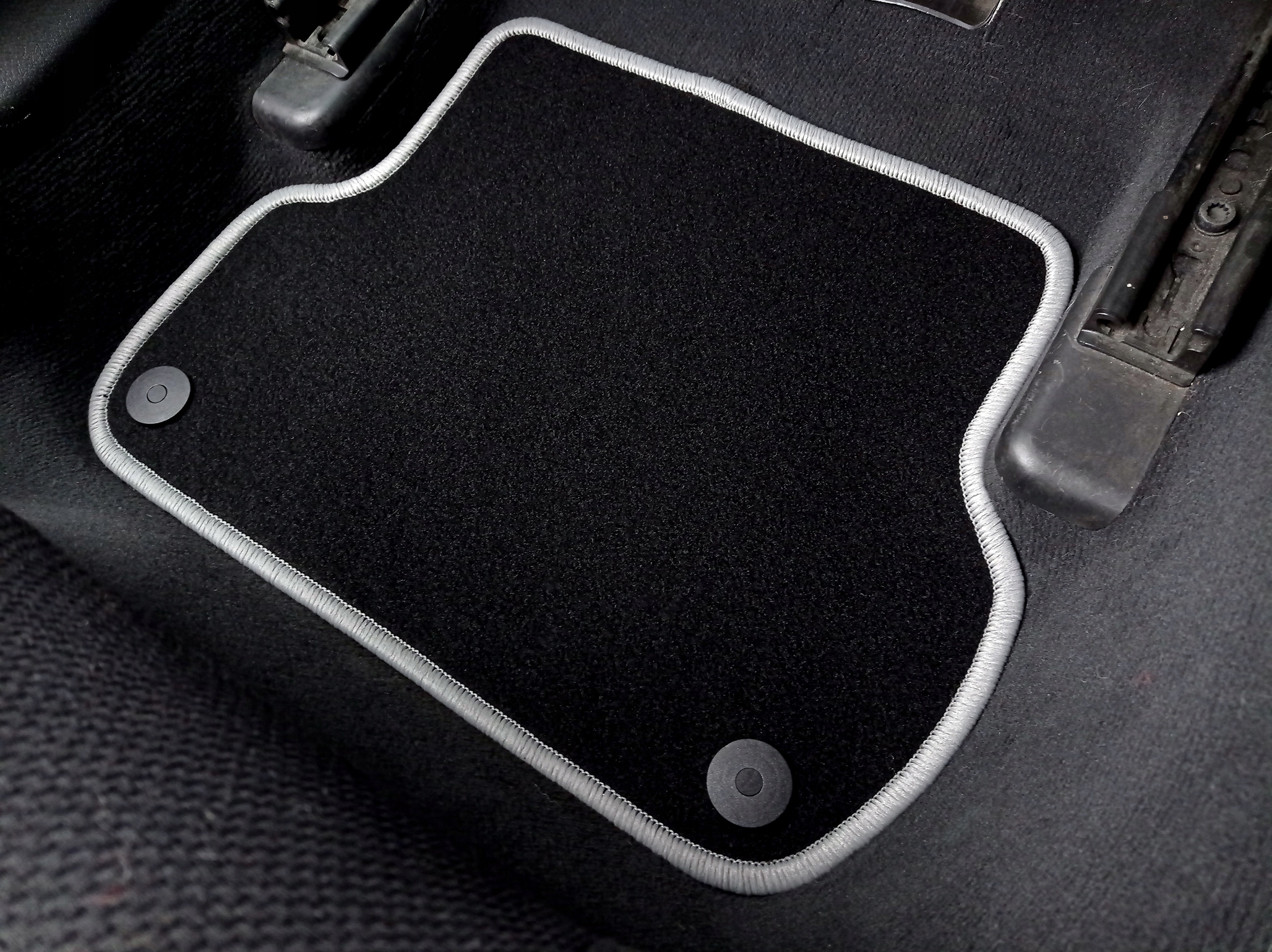 Ниже представлены бархатные коврики в исполнении «СТАНДАРТ» с уникальной вышивкой, плотностью 1750 г/м2, толщиной около 0,5 см, с отделкой прочной и долговечной пряжей светло-серого цвета. Коврики тщательно разработаны и изготовлены компанией LASOTA и адаптированы к форме пола вашего автомобиля. Нижняя часть ковриков покрыта слоем грубой резины, чтобы они не намокали и не смещались. К водительскому коврику пришито усиление, чтобы коврик не изнашивался быстрее.