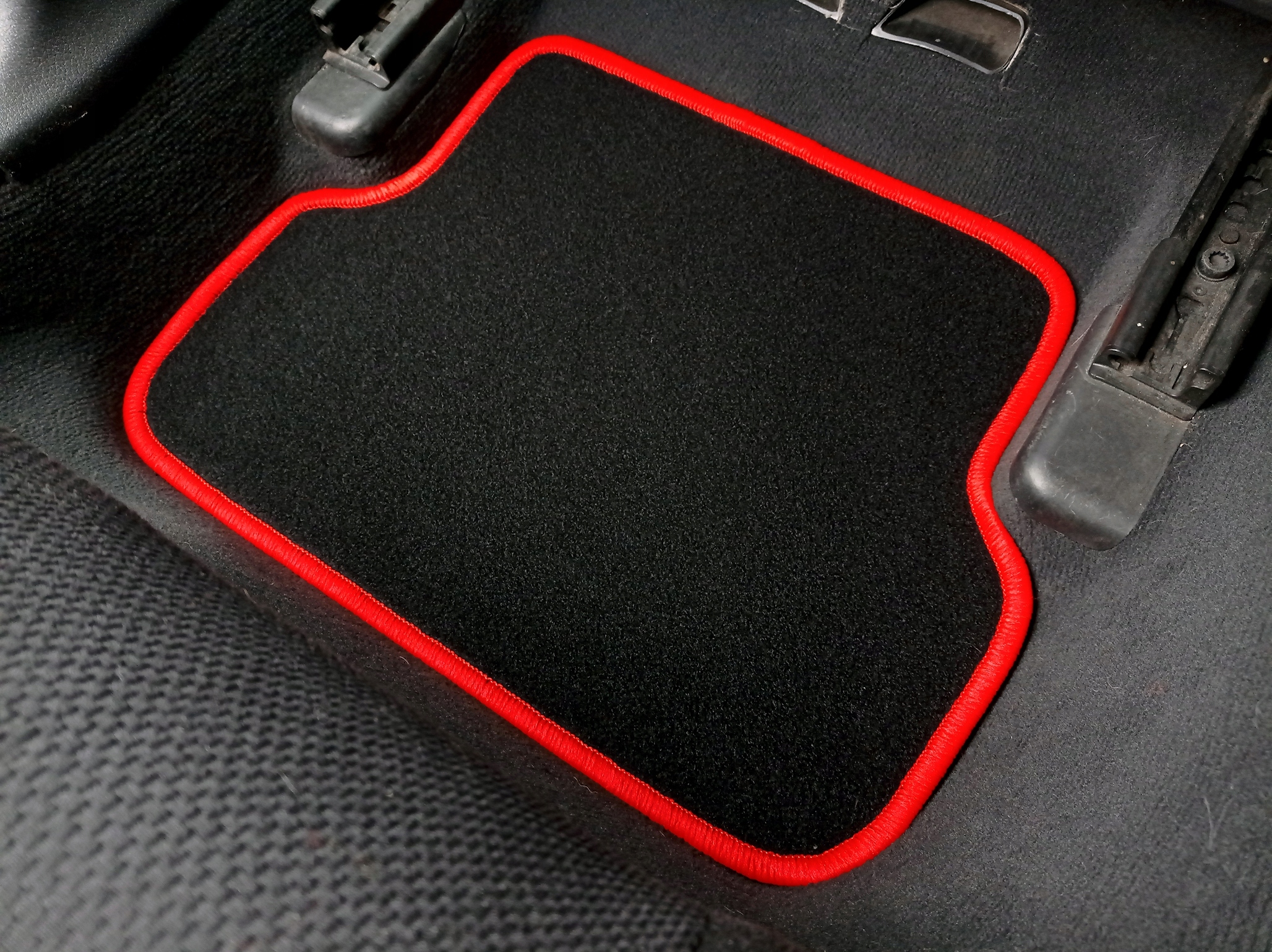 Ниже представлены бархатные коврики в варианте «СТАНДАРТ» с уникальной вышивкой, плотностью 1750 г/м2, толщиной около 0,5 см, с отделкой прочной и долговечной красной пряжей. Коврики тщательно разработаны и изготовлены компанией LASOTA и адаптированы к форме пола вашего автомобиля. Нижняя часть ковриков покрыта слоем грубой резины, чтобы они не намокали и не смещались. К водительскому коврику пришито усиление, чтобы коврик не изнашивался быстрее.