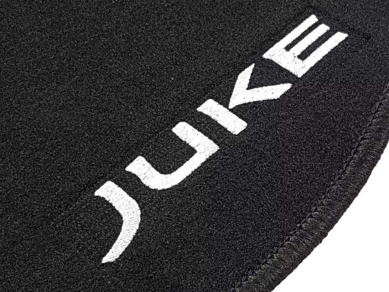 Полевые коврики, соответствующие размерам пола вашего Nissan, изготовленные из прочного велюра, с надписью серебряной джуки на передних ковриках.
