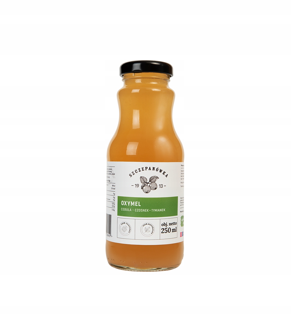 Оксимель лук-чеснок-тимьян изготовлен из живого яблочного уксуса. В уксус мы добавили мед от наших пчел, овощи и травы. Oxymel Лук-Чеснок-Тимьян — непастеризованный продукт. Он обладает свойствами живого яблочного уксуса и овощей и трав, из которых он состоит. В этом продукте вы найдете мацерированный чеснок, лук и свежий тимьян из нашего сада.