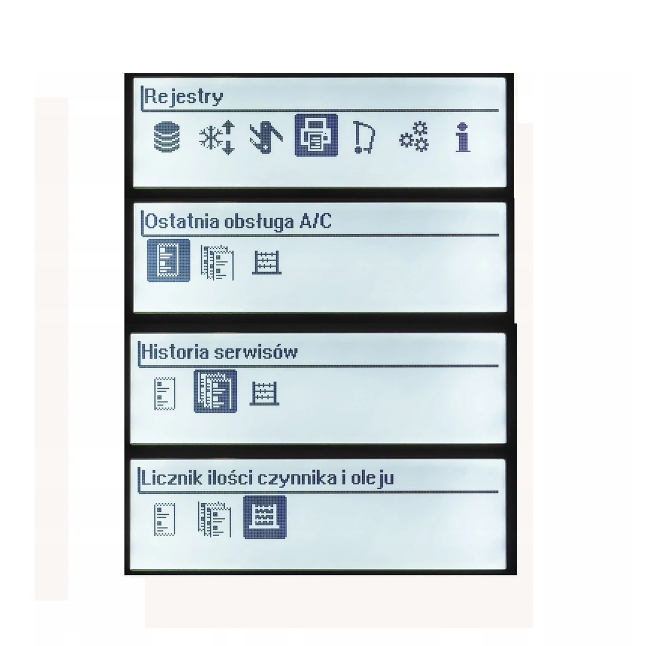 ⚙️ Меню «Регистры» дает нам доступ к такой информации, как: ход последнего обслуживания, полная история обслуживания, счетчик хладагента и масла (вся эта информация также доступна из приложения OKSYGEN)