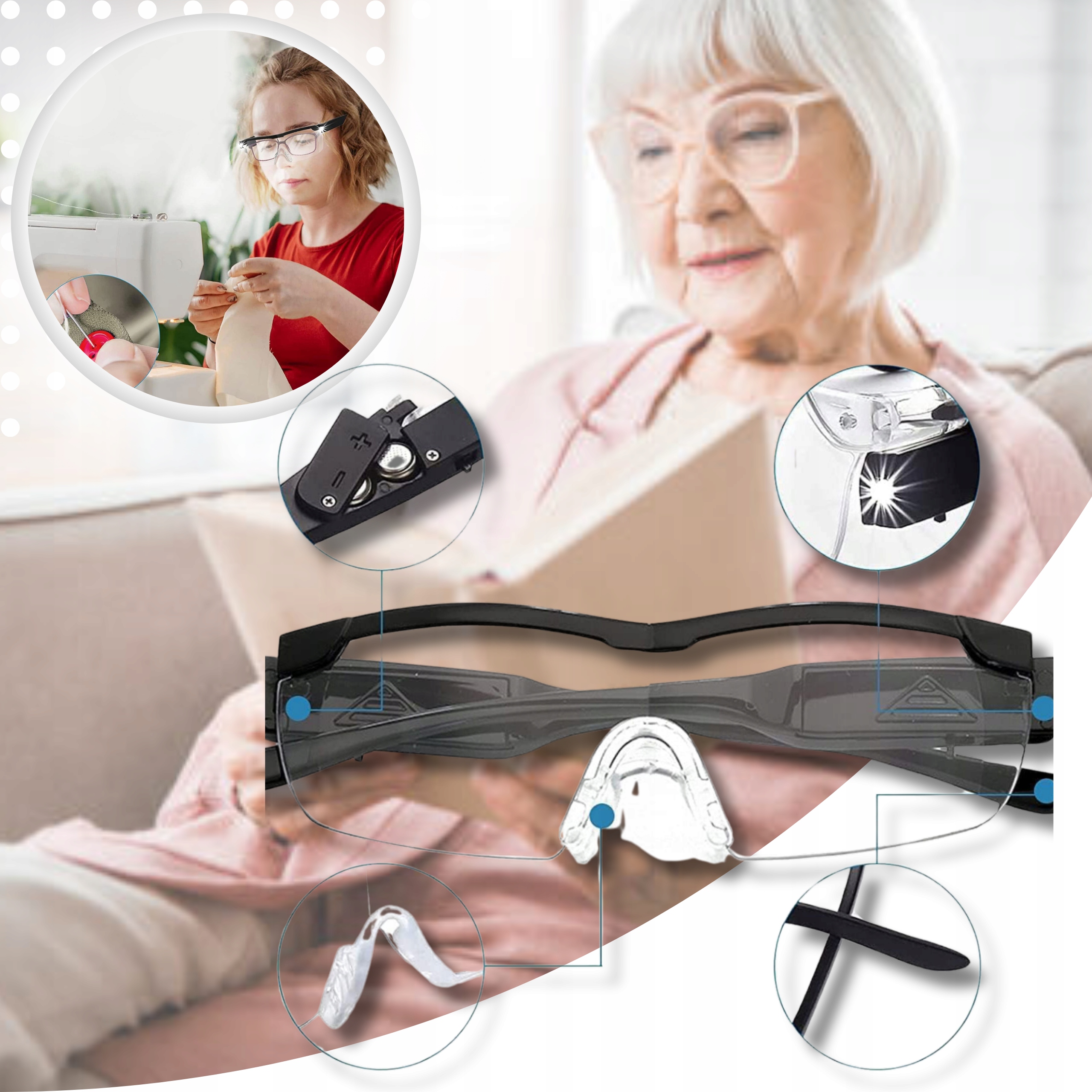 OKULARY POWIĘKSZAJĄCE LAMPKA LED LUPA DO CZYTANIA SZKŁO POWIĘKSZAJĄCE