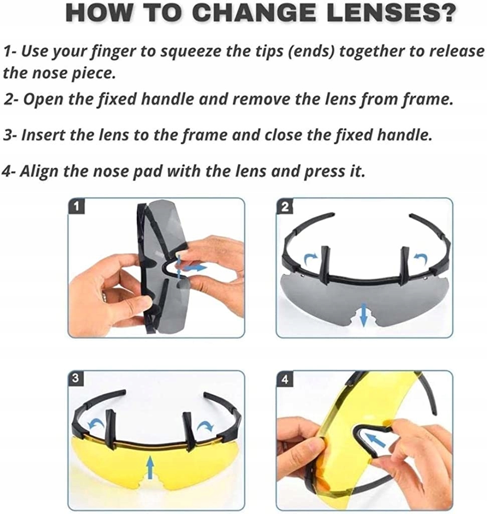 3 цветные линзы. Наш комплект соответствует стандарту ANSI Z87+ и включает в себя 3 сменные линзы прозрачного, желтого и дымчатого цвета для использования в различных условиях освещения. Изготовлены из лучшего и прочного материала для линз — поликарбоната.