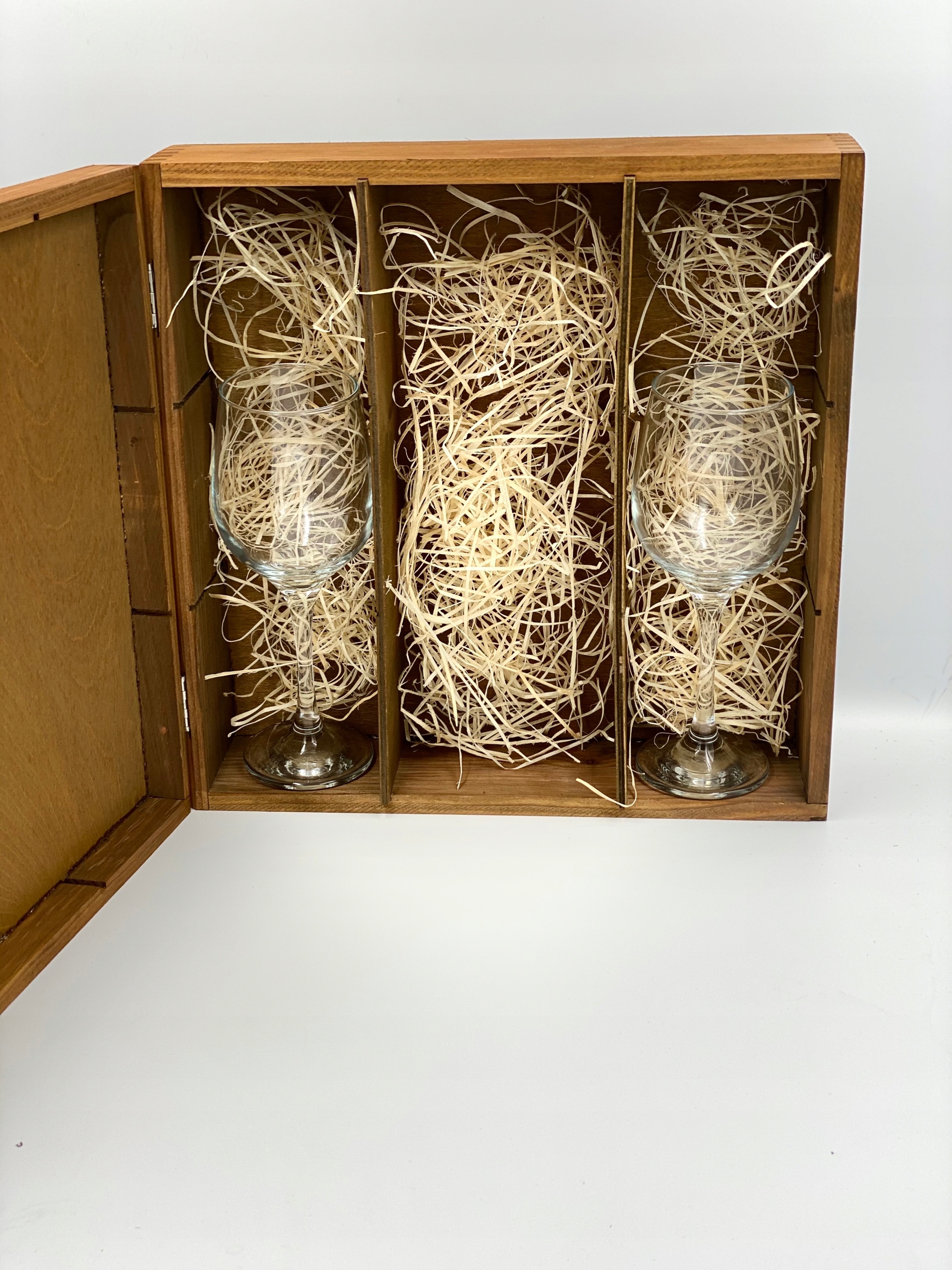 Мы представляем винную коробку с двумя бокалами 300 мл. Наш продукт - отличный подарок для свадьбы, дня рождения или случайных праздников. Элегантный дизайн коробки и персонализированная гравюра будет отличным, как и благодаря родителям и свидетелям. Удивите своих близких уникальным подарком, который является нашим персональным набором. Кроме того, каждая коробка дополняется деревянной шерстью, благодаря которой его контент выглядит еще более важным
