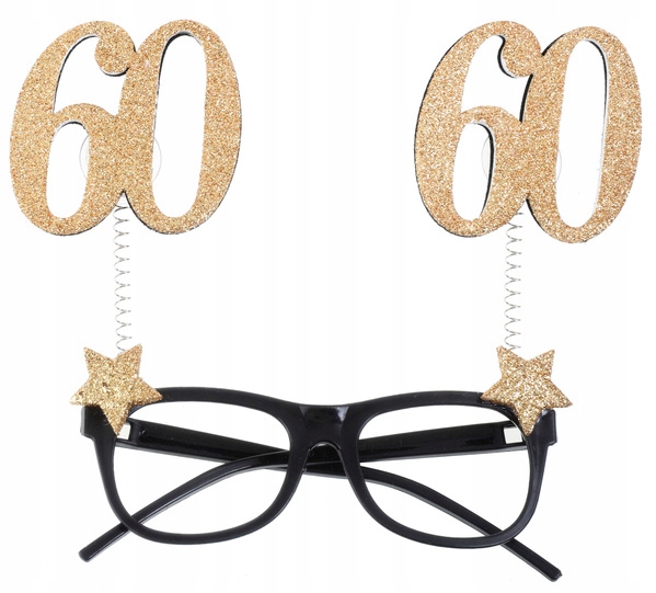 Эти элегантные золотые очки с цифрой 60 — идеальный аксессуар для празднования 60-летия. Очки изготовлены из качественного материала и удобны в ношении. Цифра 60 — золотая с эффектом блесток, придает очкам праздничный вид.
