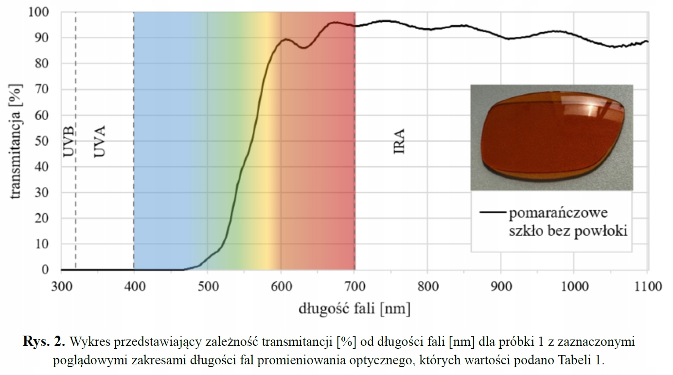 Цель исследования была определена путем пропускания линз очков на длине волны 300-1100 нм. Измерения проводились с использованием спектрофотометра Evolution 220 UV-VIS. Для человека видимый свет находится приблизительно в длине волны волны электромагнитных радиационных волн 380-780 нм. В таблице ниже представлены диапазоны длины волны оптического излучения: ультрафиолетовое излучение (UVR), видимый свет (VL), инфракрасный (IR).