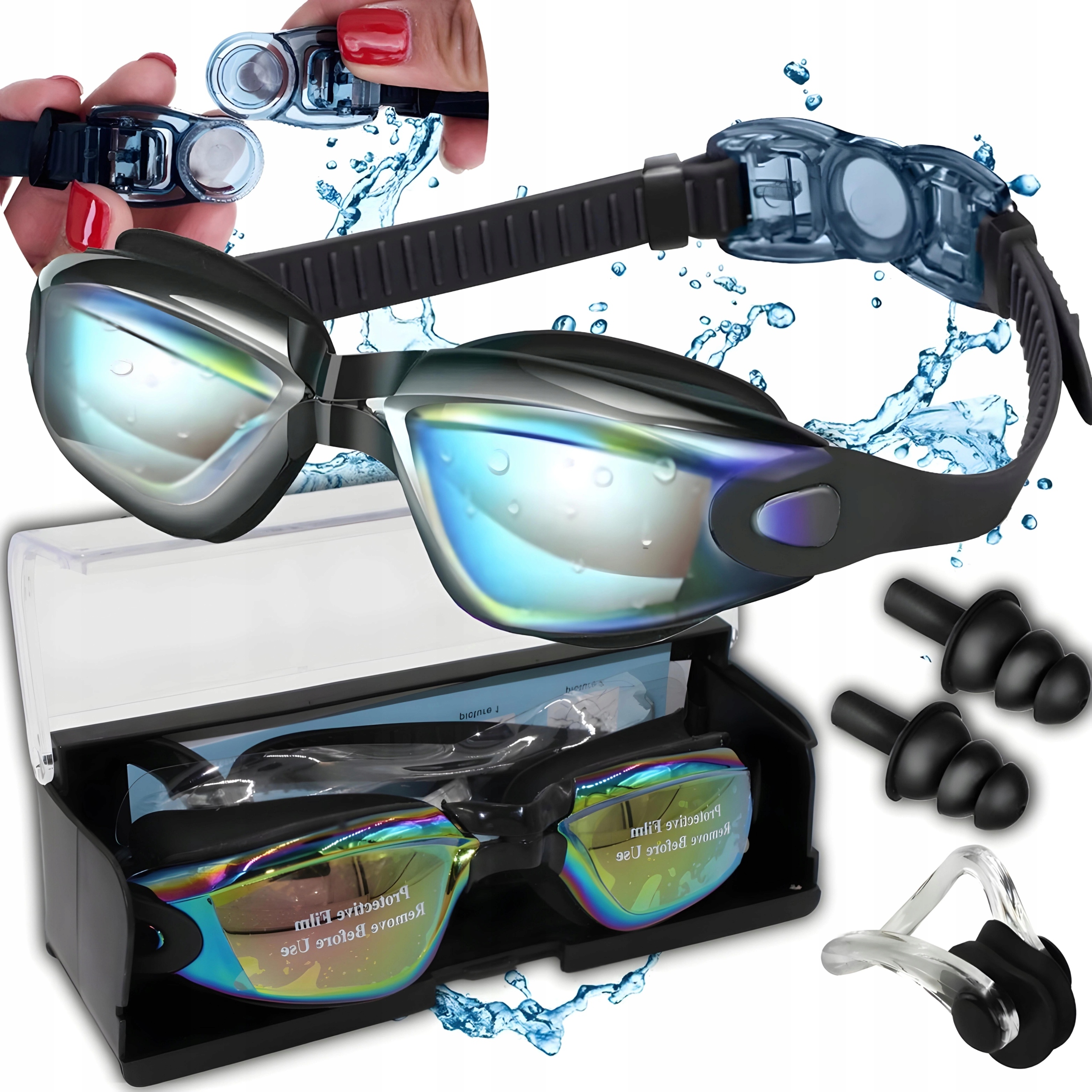 ОЧКИ ДЛЯ ПЛАВАНИЯ С ПРОТИВОТУМАННЫМ ПОКРЫТИЕМ С НАБОРОМ ЗАТЧОК ДЛЯ УШЕЙ И НОСОВ