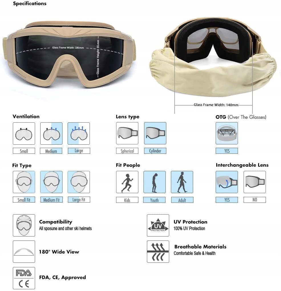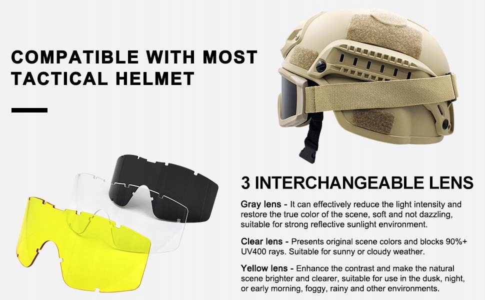 [Три сменные линзы] Одна оправа для песочных очков из ТПУ + три линзы из ПК разных цветов. Желтые очки, серые очки, прозрачные очки. Благодаря различным светопропускающим линзам наши очки для страйкбола подходят для разных погодных условий и сцен