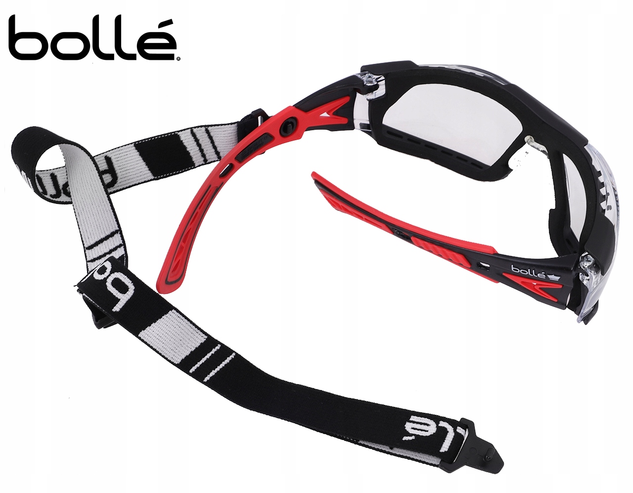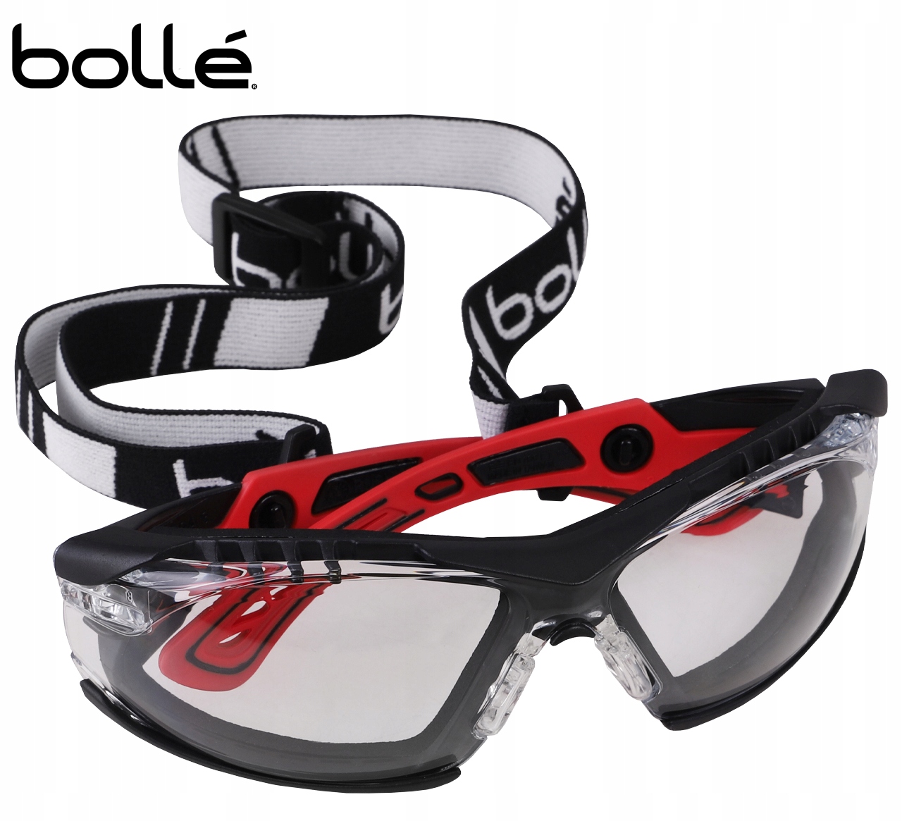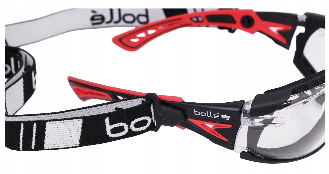 Защитные очкиRUSH+ от французского бренда Bolle. Помимо композитных заушников в комплект входит удобное регулируемое нейлоновое оголовье.