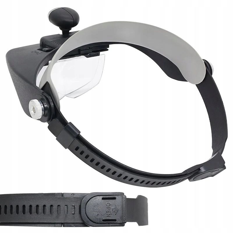 Светодиоды можно регулировать по углу наклона и поворачивать влево или вправо в зависимости от ваших потребностей. Весь механизм основан на голове в виде козырька. Вы можете наклонить купол вверх или вниз. Лупа имеет универсальный размер, поскольку имеет полностью регулируемый ремешок. Позволяет работать в корректирующих очках.