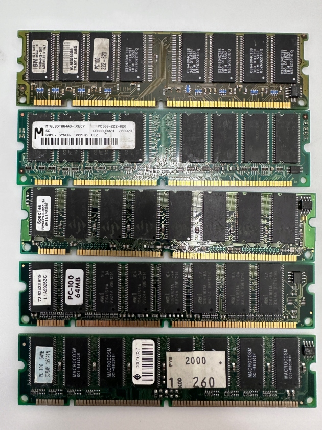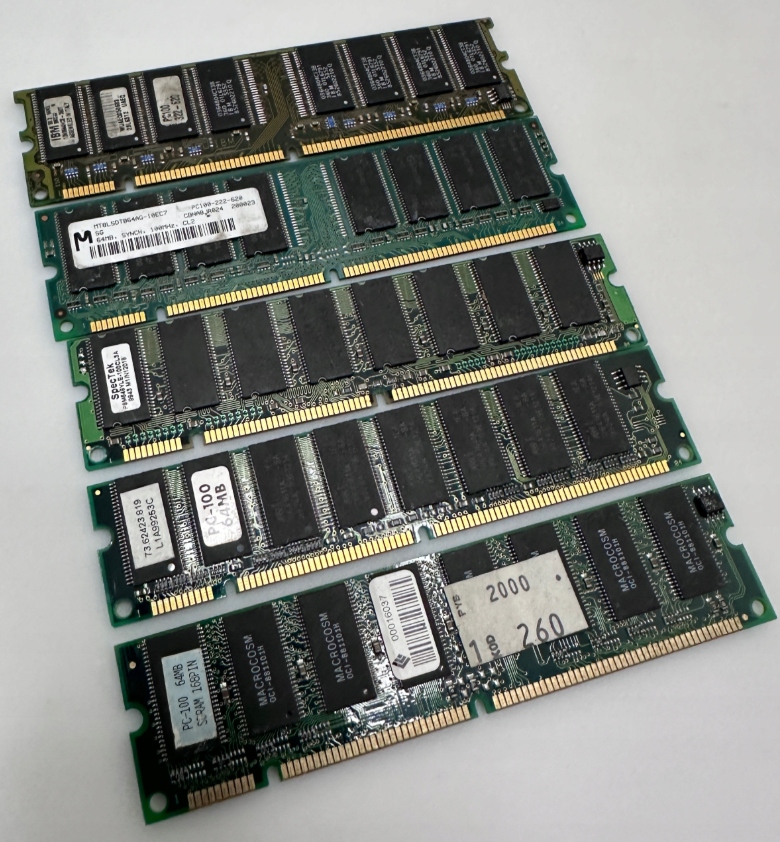 Предмет продажи — б/у ретро-оперативная память PC-100 128 МБ от различных производителей.
