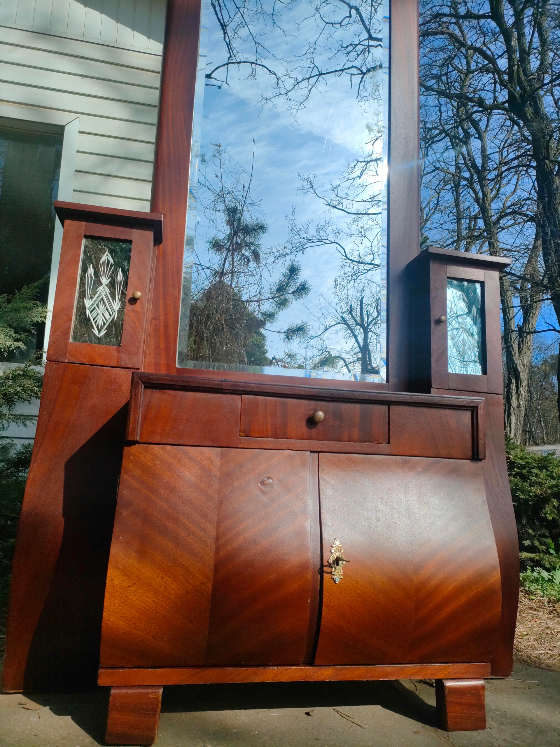 Предмет аукциона — старинное тремо. Мебель в очень хорошем состоянии, готова к немедленному использованию. Скошенная зеркальная поверхность - оригинально, но с небольшими изменениями цвета. За дополнительную плату возможно приобретение нового зеркала. Рекомендую и приглашаю к покупке. Другая информация ниже