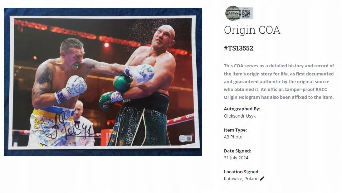 ОЛЕКСАНДР УСИК А3 постер з АВТОГРАФОМ + СЕРТИФІКАТ Тайсон Ф'юрі Бокс Алі