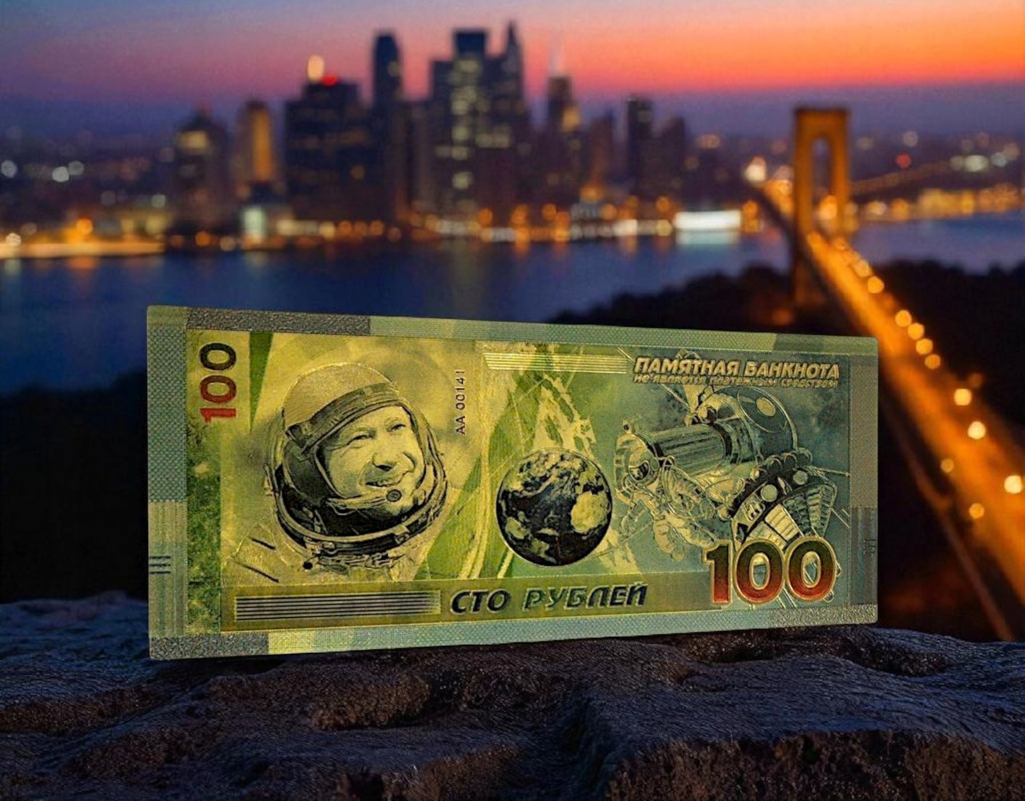 НЕОБЫЧНАЯ ПОЗОЛОЧЕННАЯ БАНКНОТА ИЗ ПВХ АЛЕКСЕЙ ЛЕОНОВ