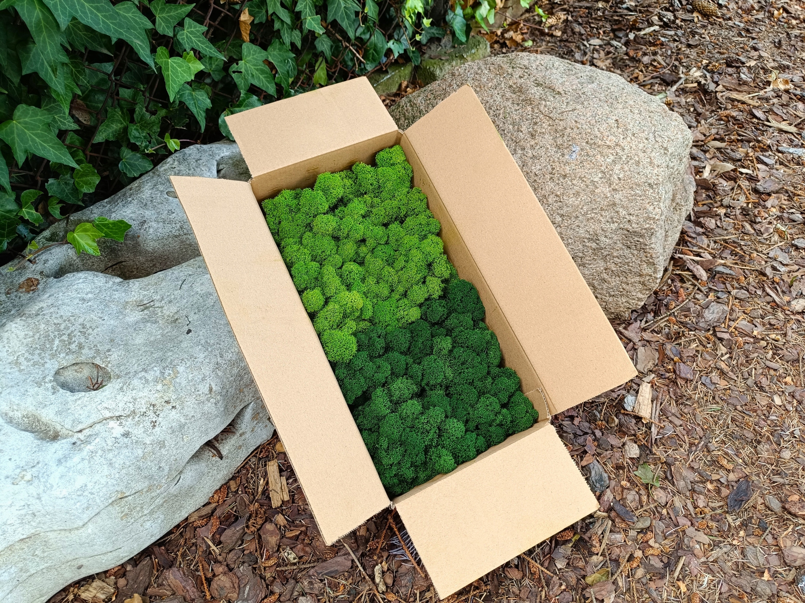После подготовки и окрашивания лишайники сушат. Однако иногда случается, что недавно приготовленный мох может быть еще слегка влажным. После получения товара рекомендуем открыть коробку, чтобы мох не впитал слишком много влаги и не потерял своих свойств.